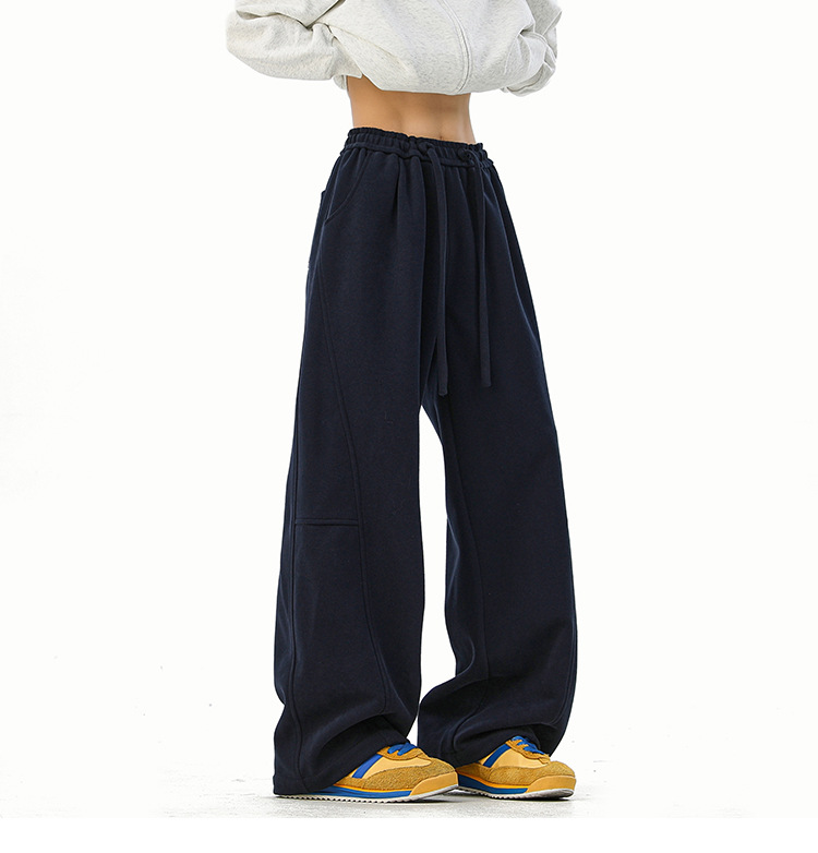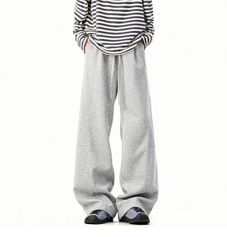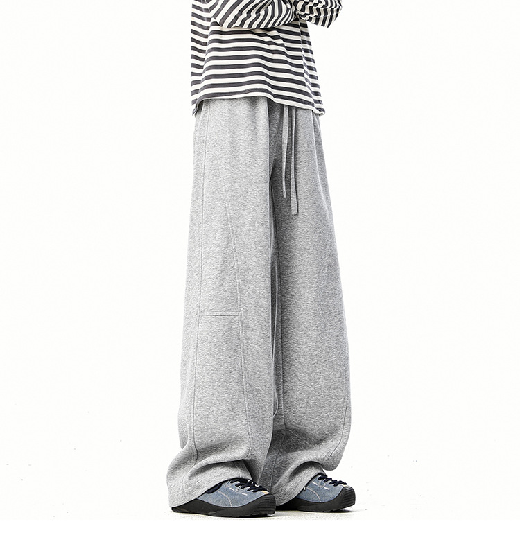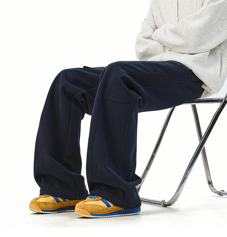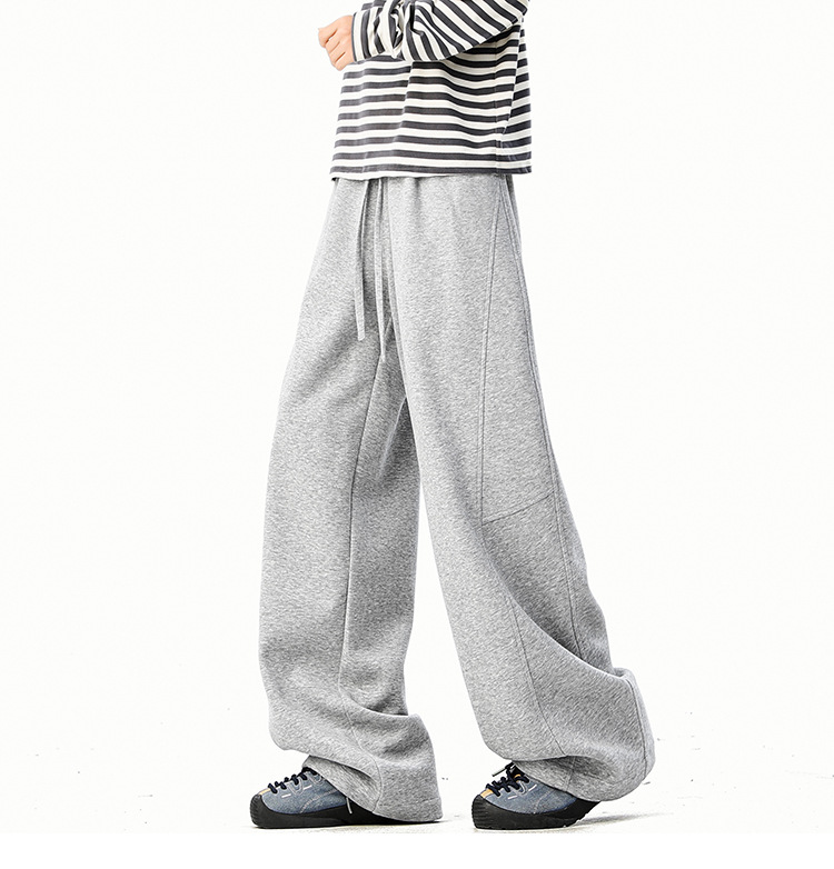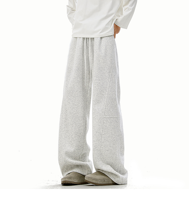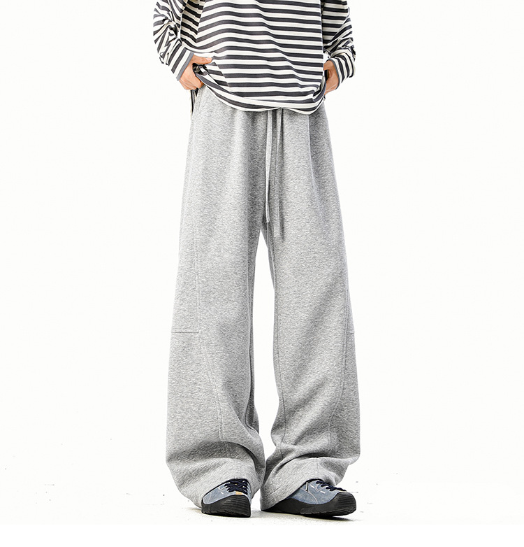 Retro Deconstructed Knife-Edge Sweatpants Unisex Winter Fashion High-Drape Versatile Casual Pants Heavyweight Wide-Leg Athletic Pants