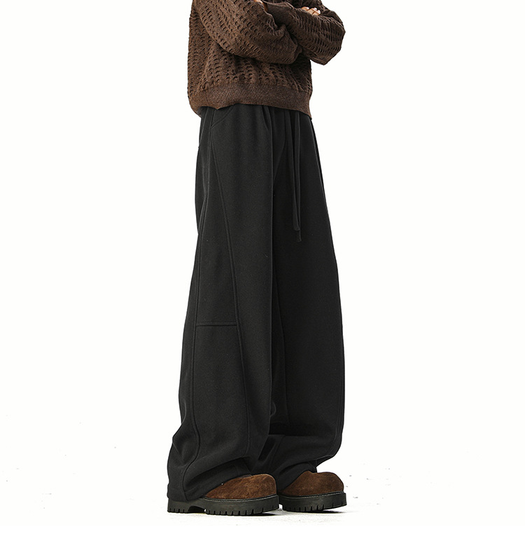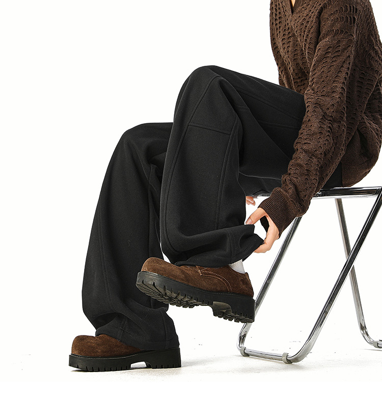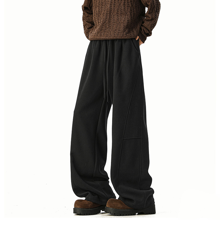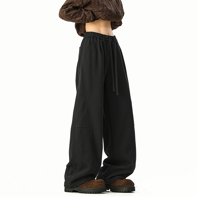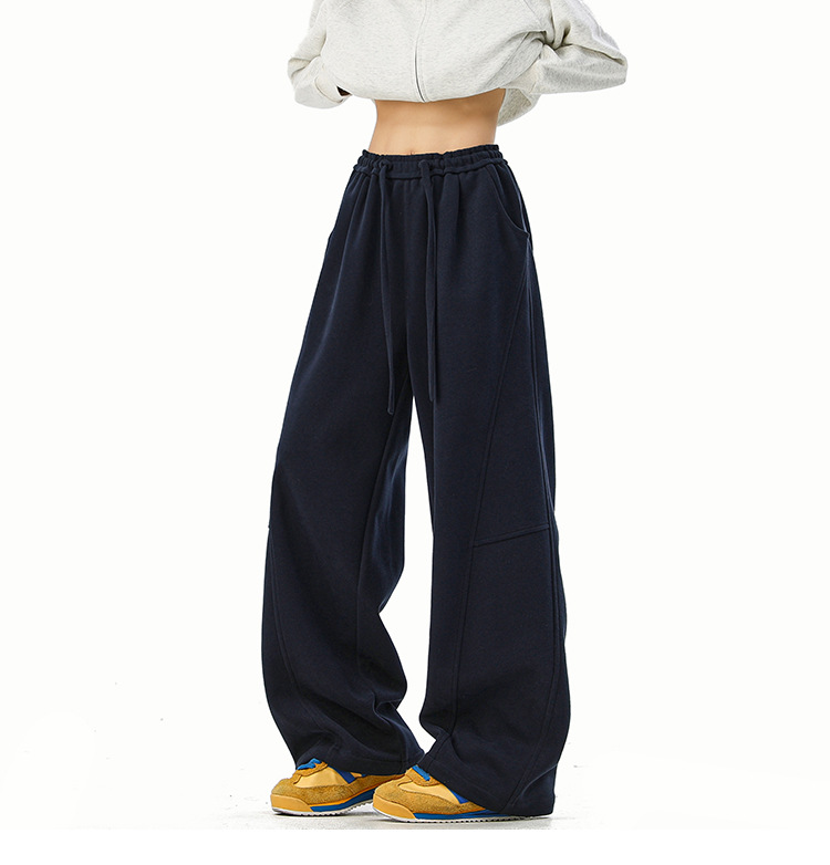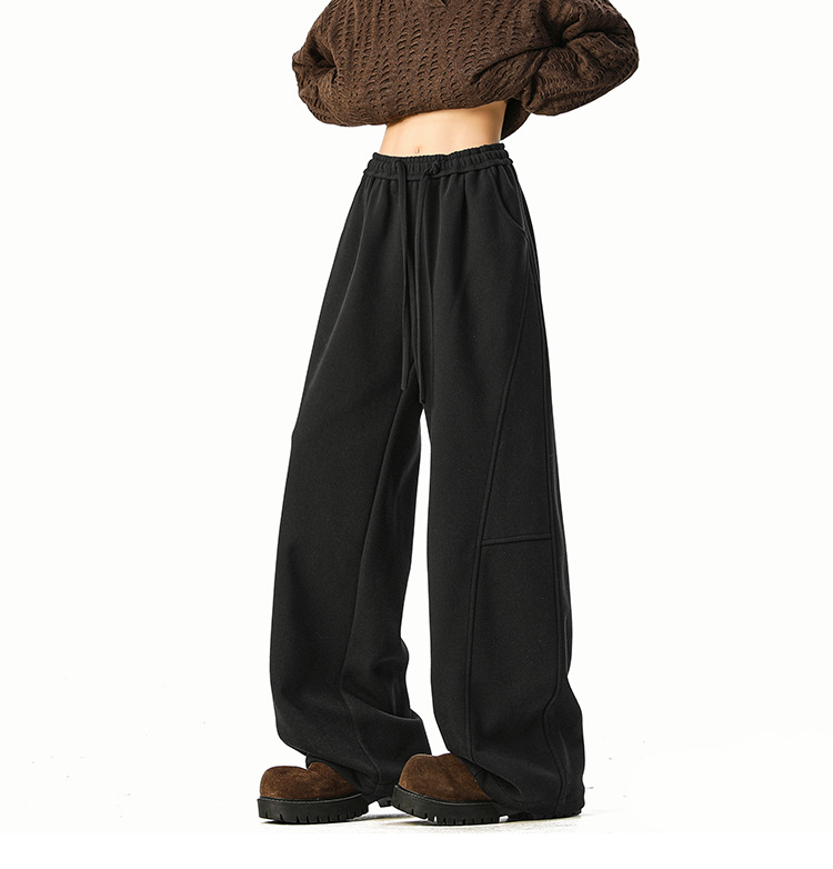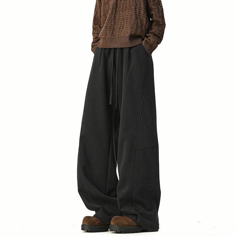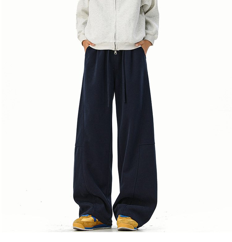 Retro Deconstructed Knife-Edge Sweatpants Unisex Winter Fashion High-Drape Versatile Casual Pants Heavyweight Wide-Leg Athletic Pants