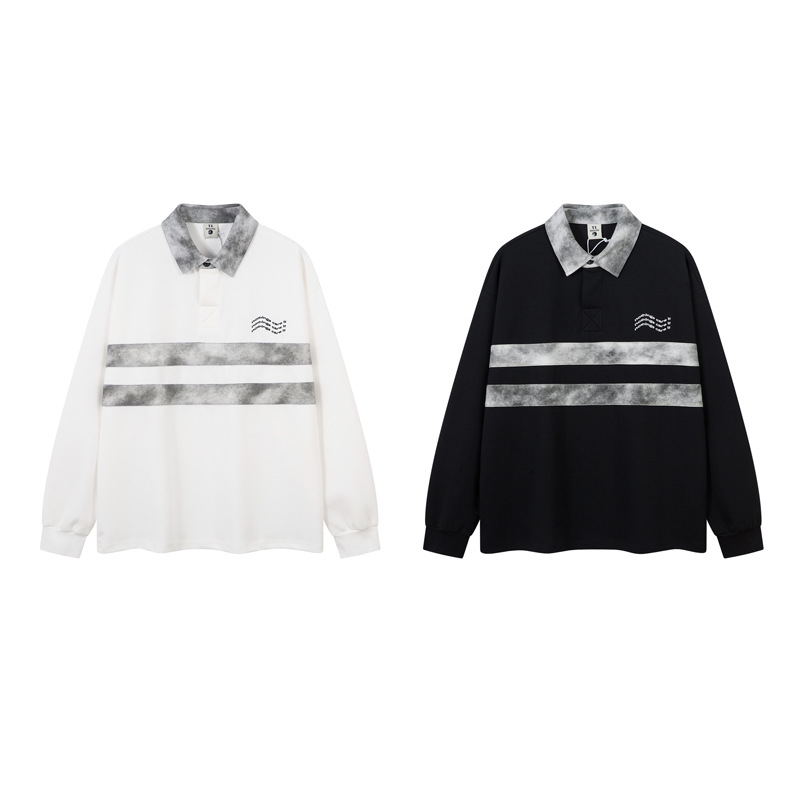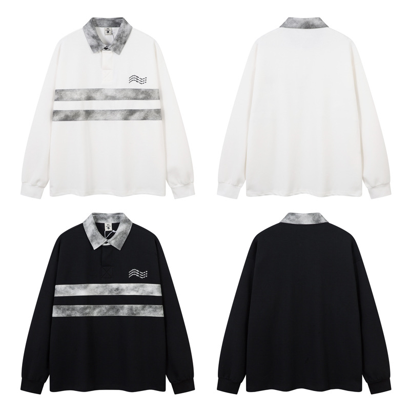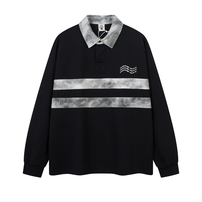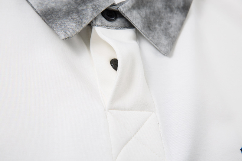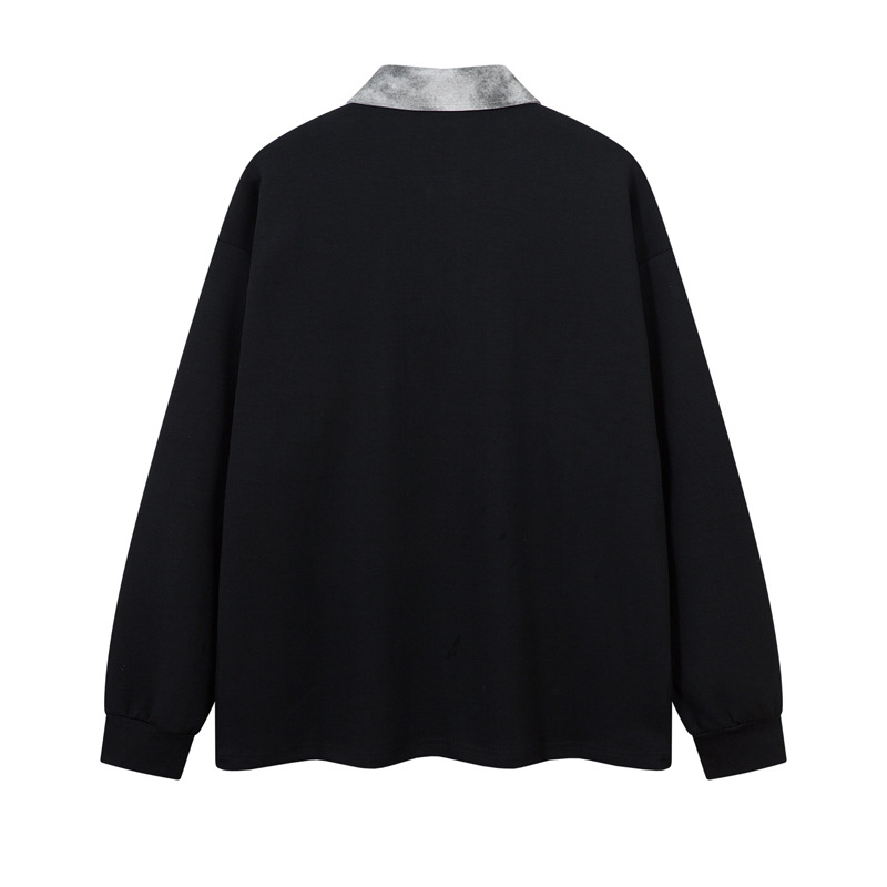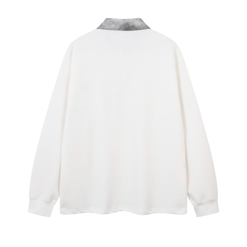 Retro Embroidered Patchwork Polo Hoodie – Loose Fit