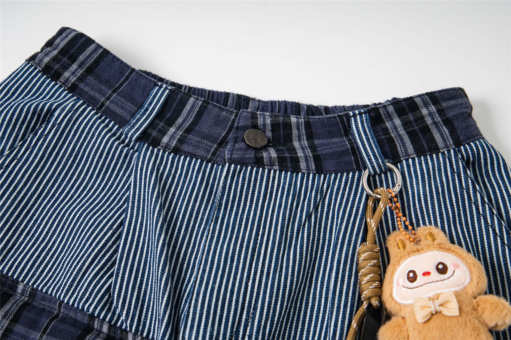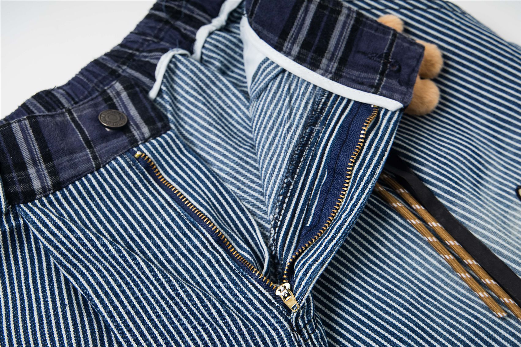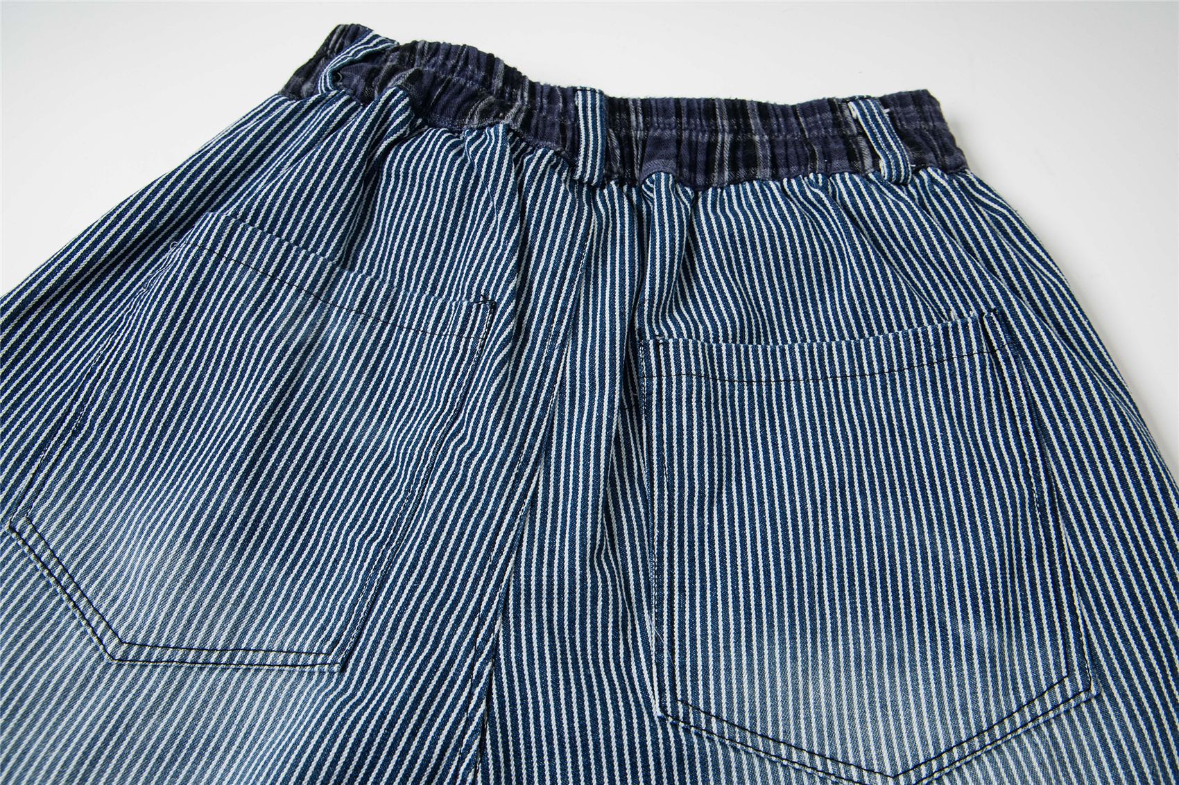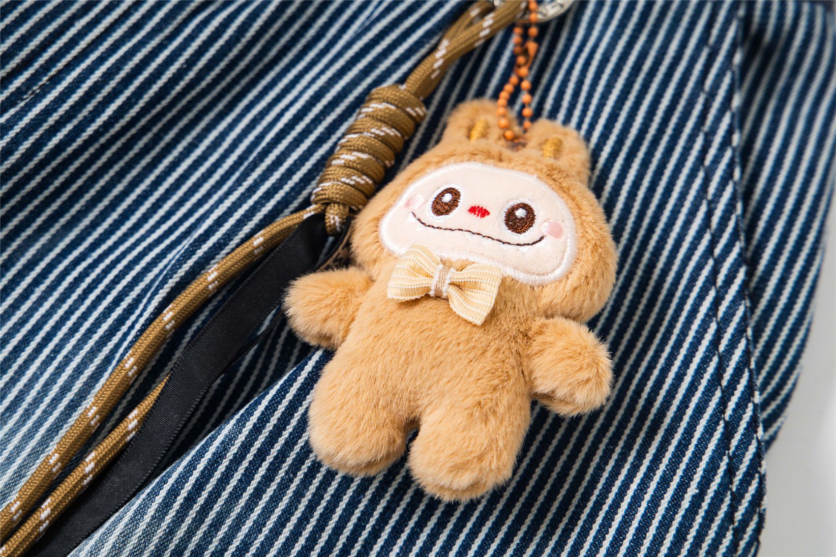 Retro Fun Cartoon Embroidery Washed Stripe Denim Pants Unisex Loose Casual Straight Street Long Trousers