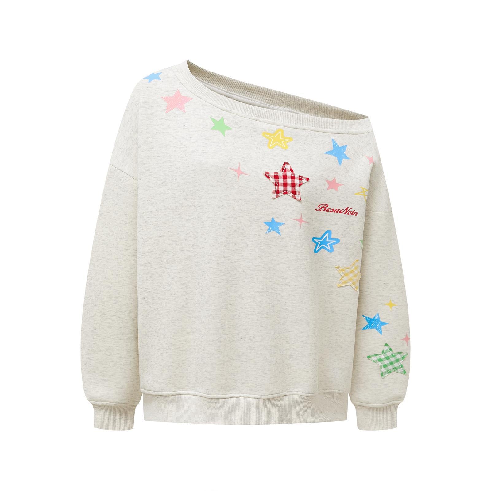 Retro Graffiti Star Hoodie – Slanted Shoulder