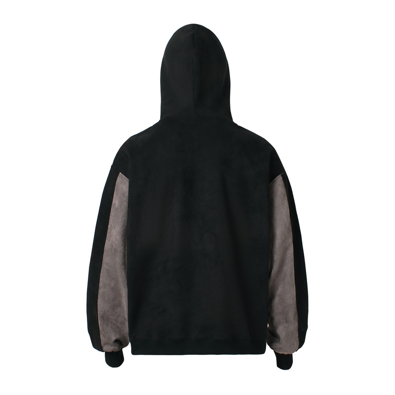 Retro Patchwork Hip-Hop Hoodie – High Neck Loose Fit