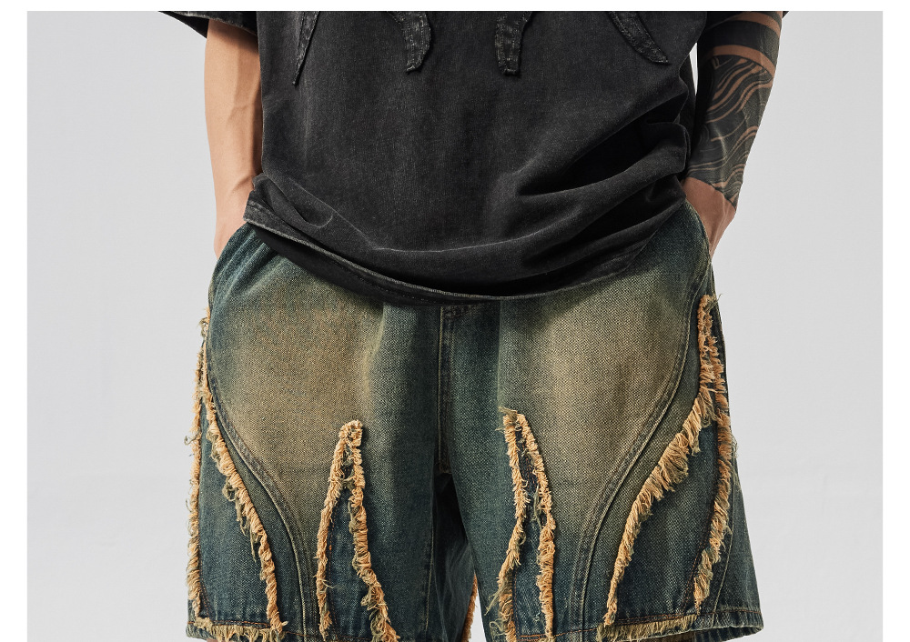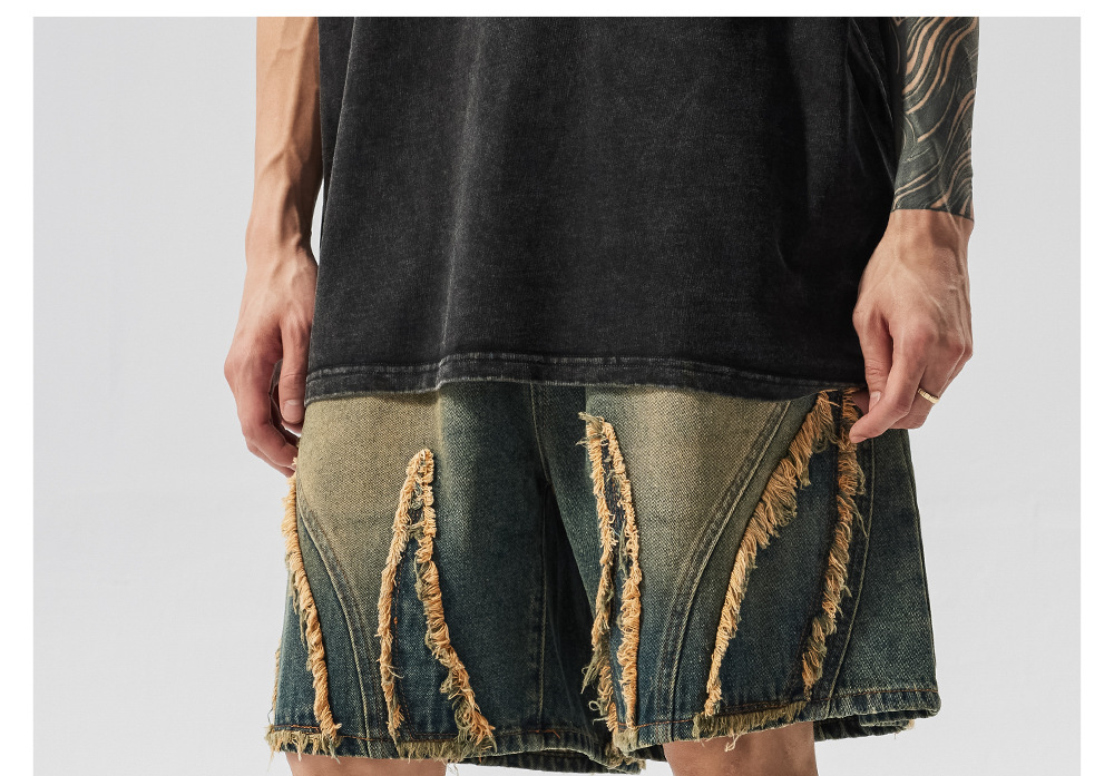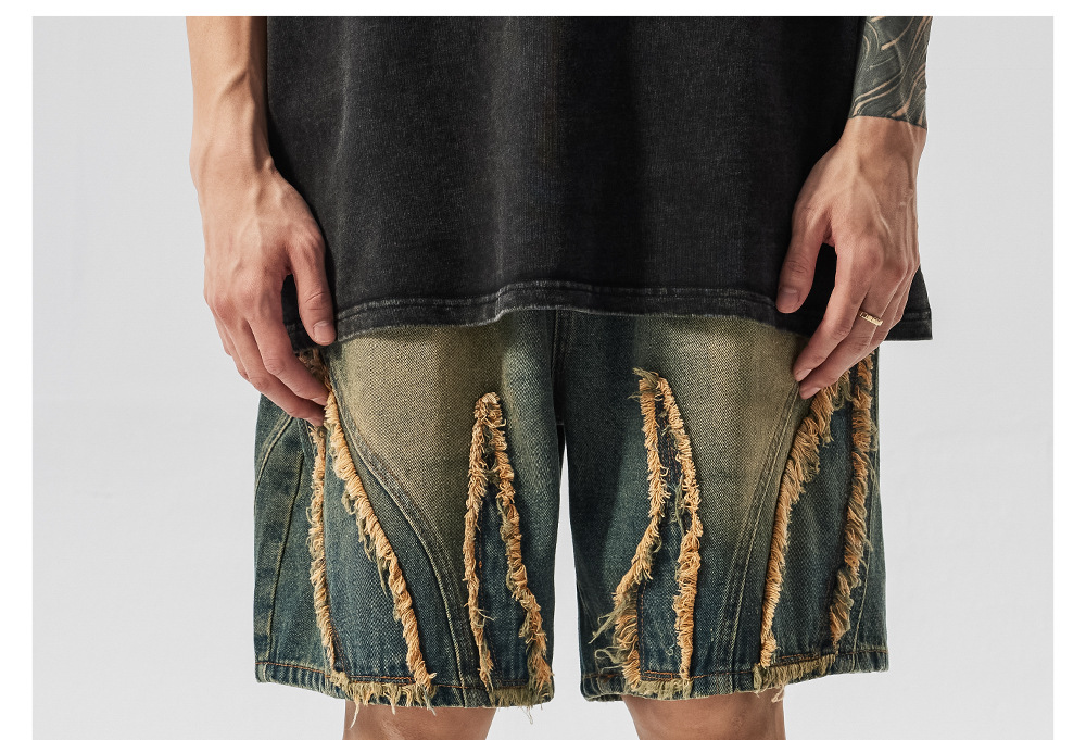 Retro Washed Frayed Denim Shorts for Men