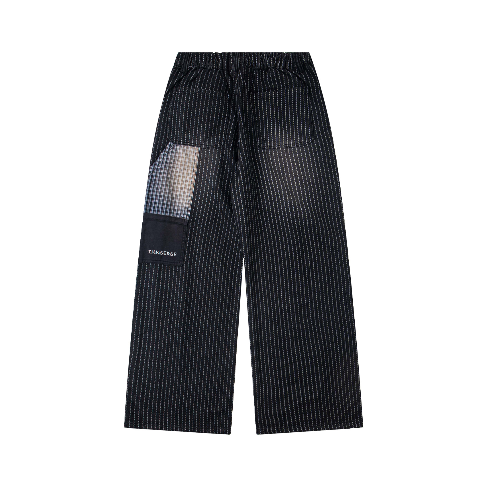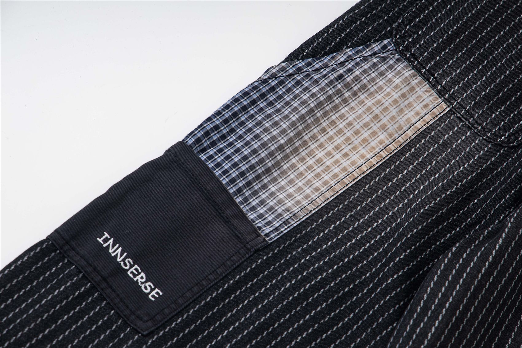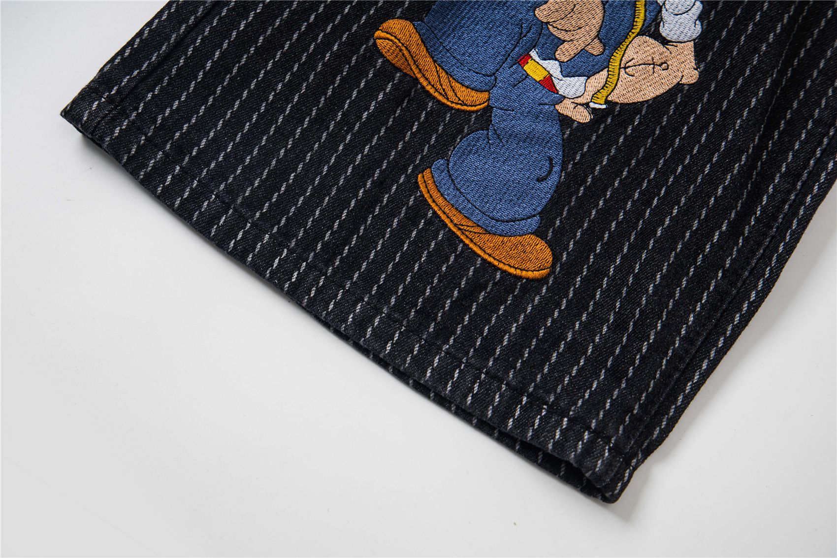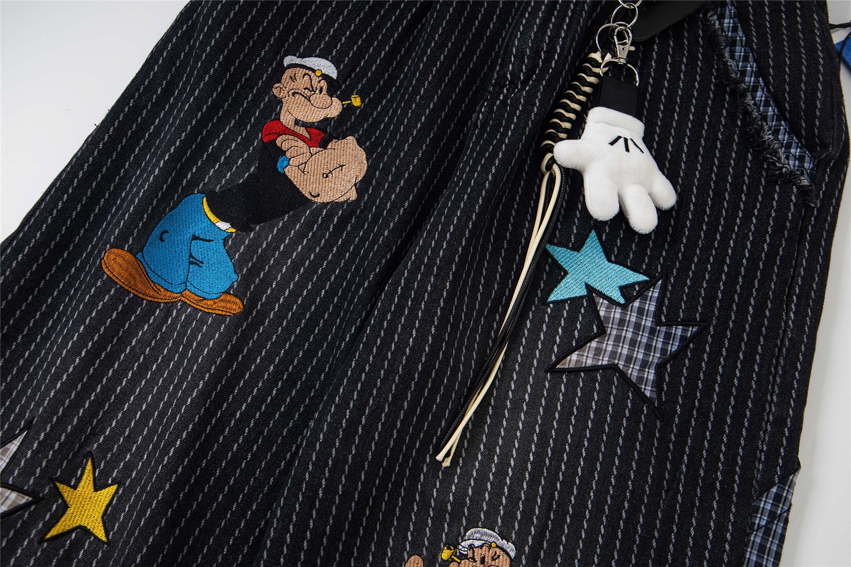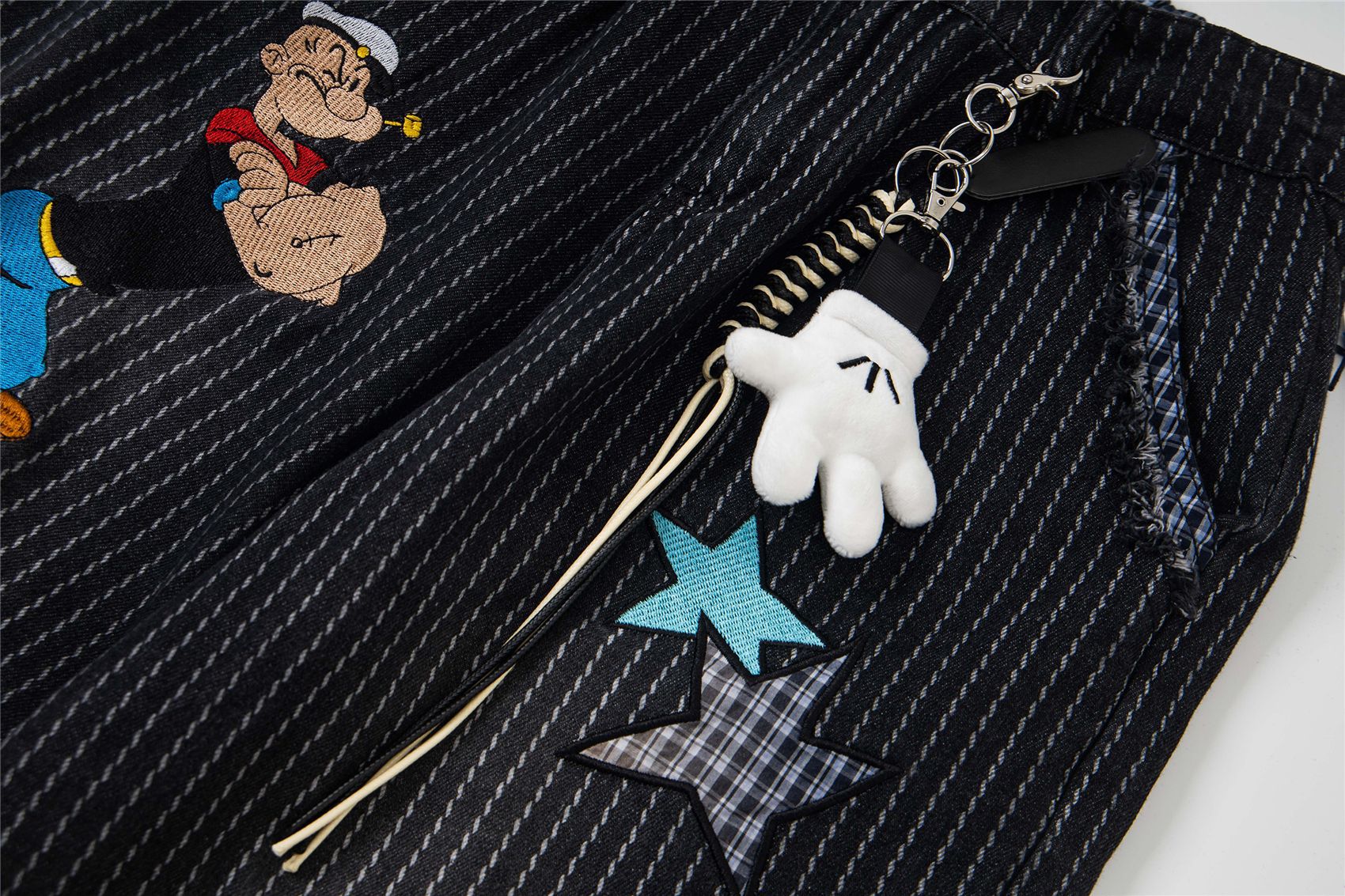 Retro Washed Fun Pattern Embroidery Splicing Striped Loose Casual Trousers Unisex BF Wide Leg Pants