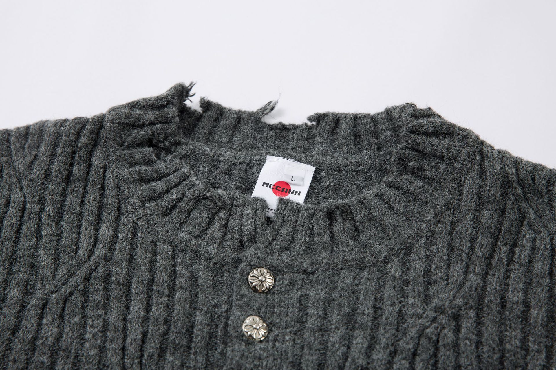 Ripped Hem Knit Cardigan – Loose Fit