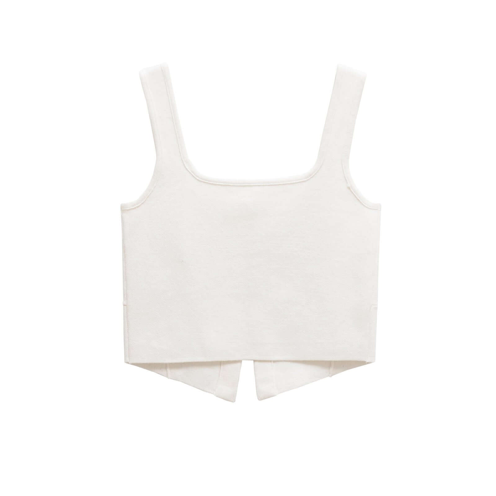• Slim Fit Knitted Short Tank Top in elegant white, showcasing a minimalist design and classic sleeveless style.