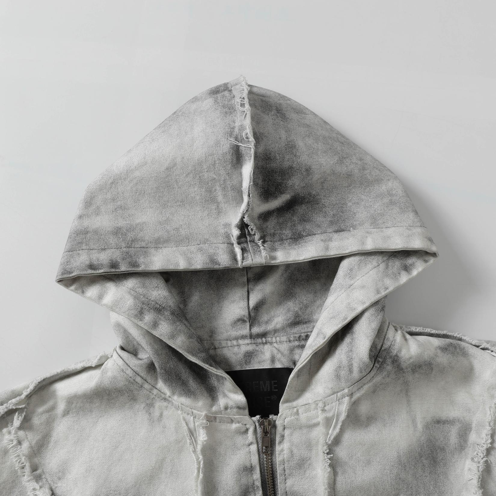 Breathable cotton unisex spray paint spliced zipper jacket with long sleeves for bold casual streetwear comfort and style.