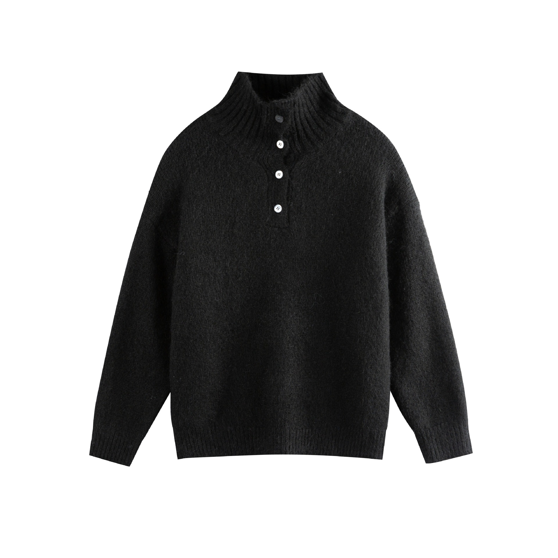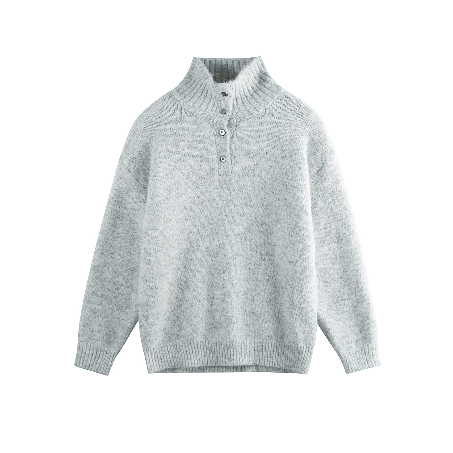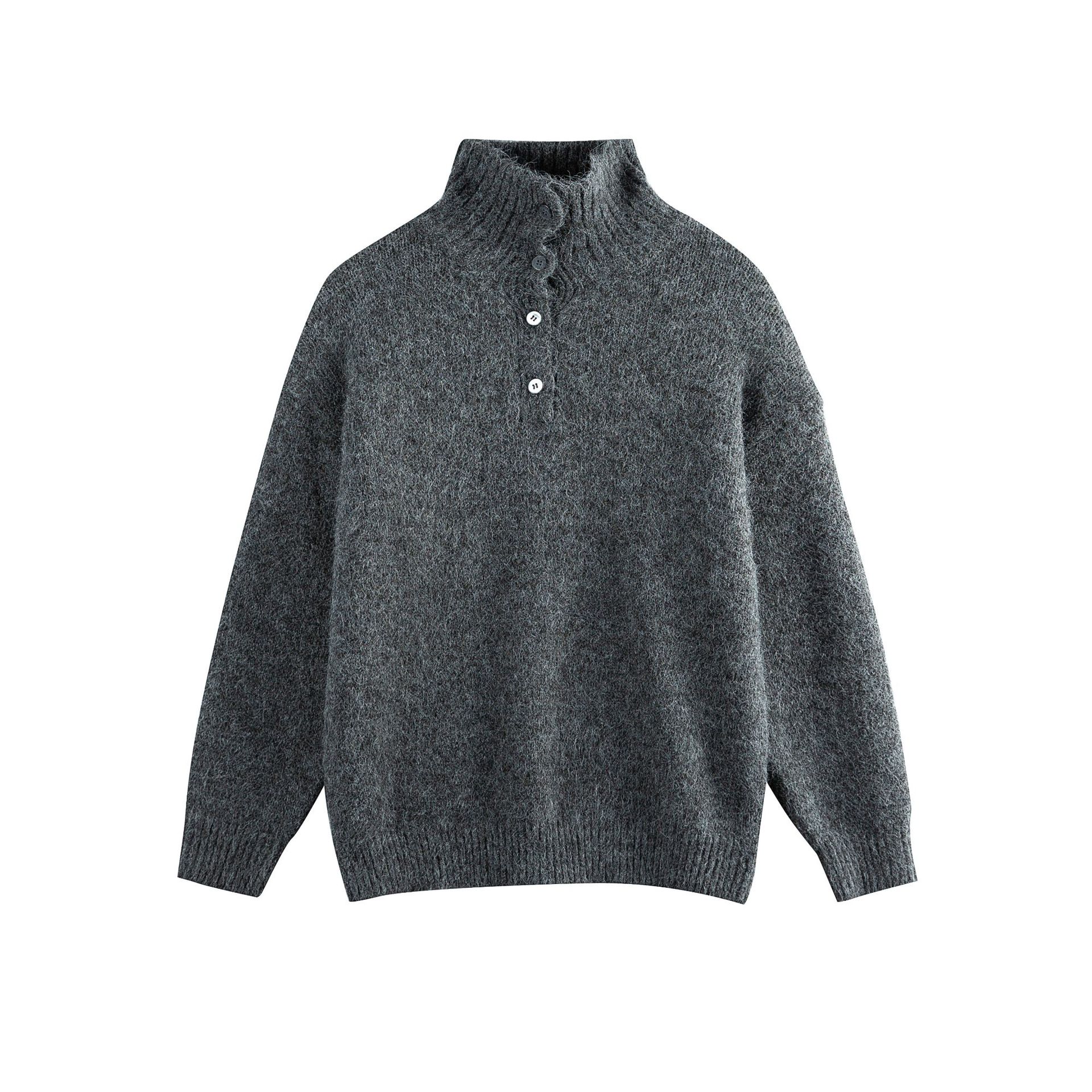 The Simple Solid Color Loose Buttoned Stand-Up Collar Pullover Sweater delivers a clean and effortless look inspired by Japanese Fresh Style aesthetics. Designed with a high-neck stand collar and a relaxed loose fit, this sweater offers both warmth and understated elegance for everyday casual wear.