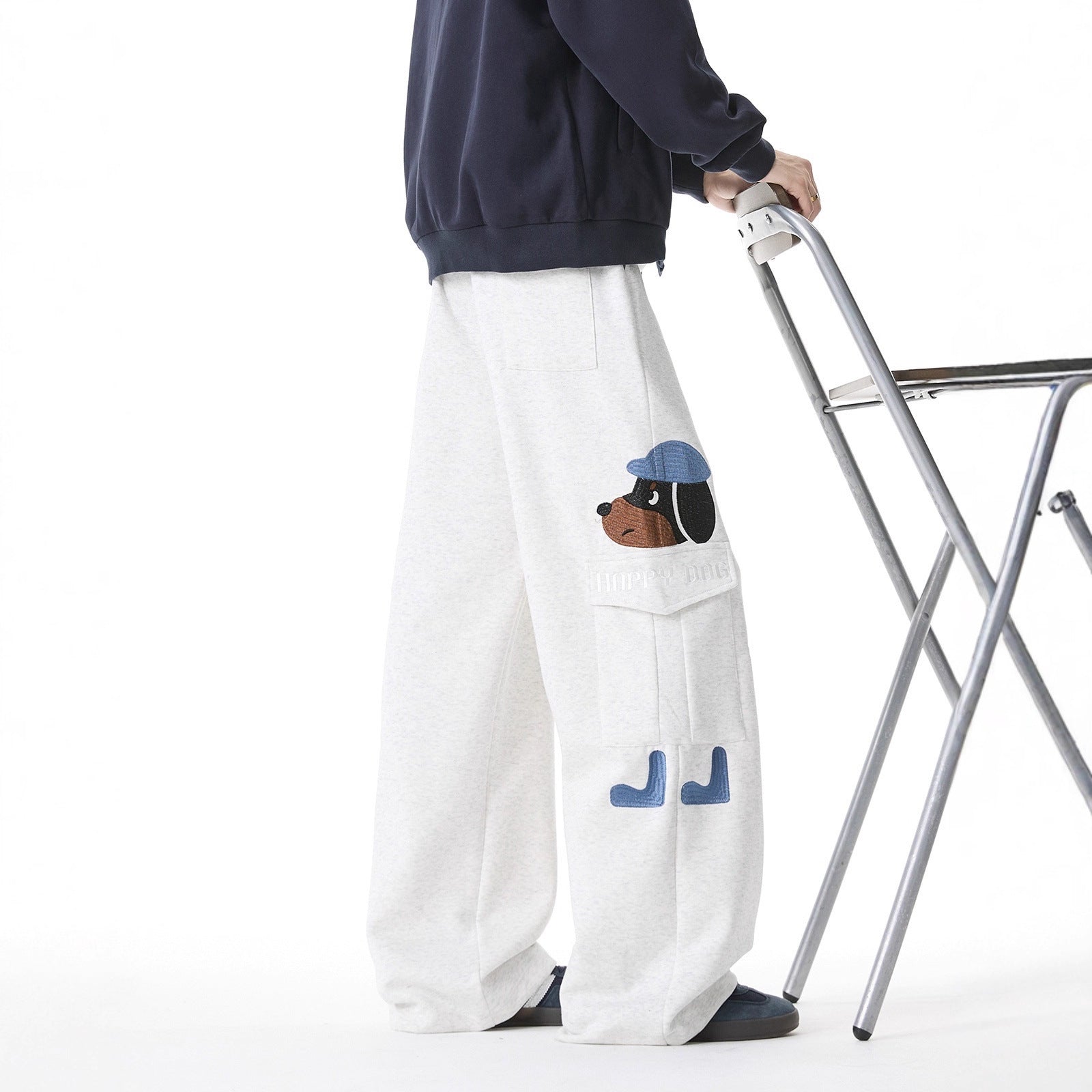 Style Dog Embroidery Sweatpants Men's Retro Multi-Pocket Casual Pants High Street Versatile Drawstring Loose Athletic Pants