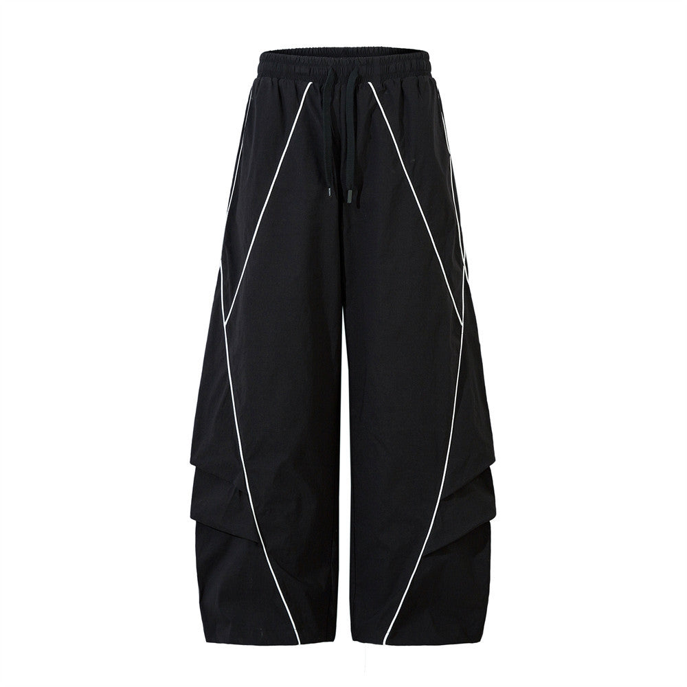 Tape Decorated Casual Pants Loose Wide Leg Trousers Men's Street Trendy Design Sporty Pleated Drape Long Pants
