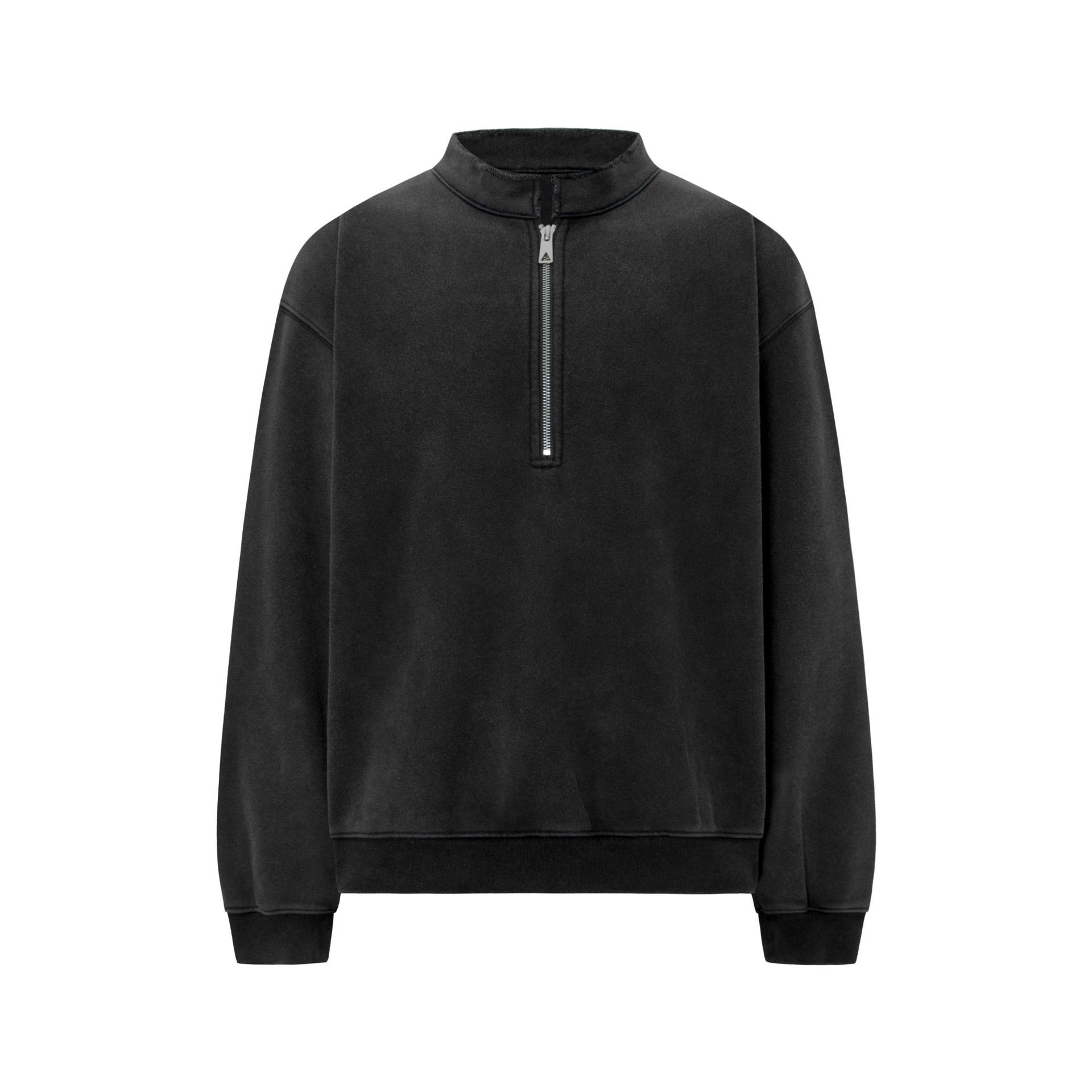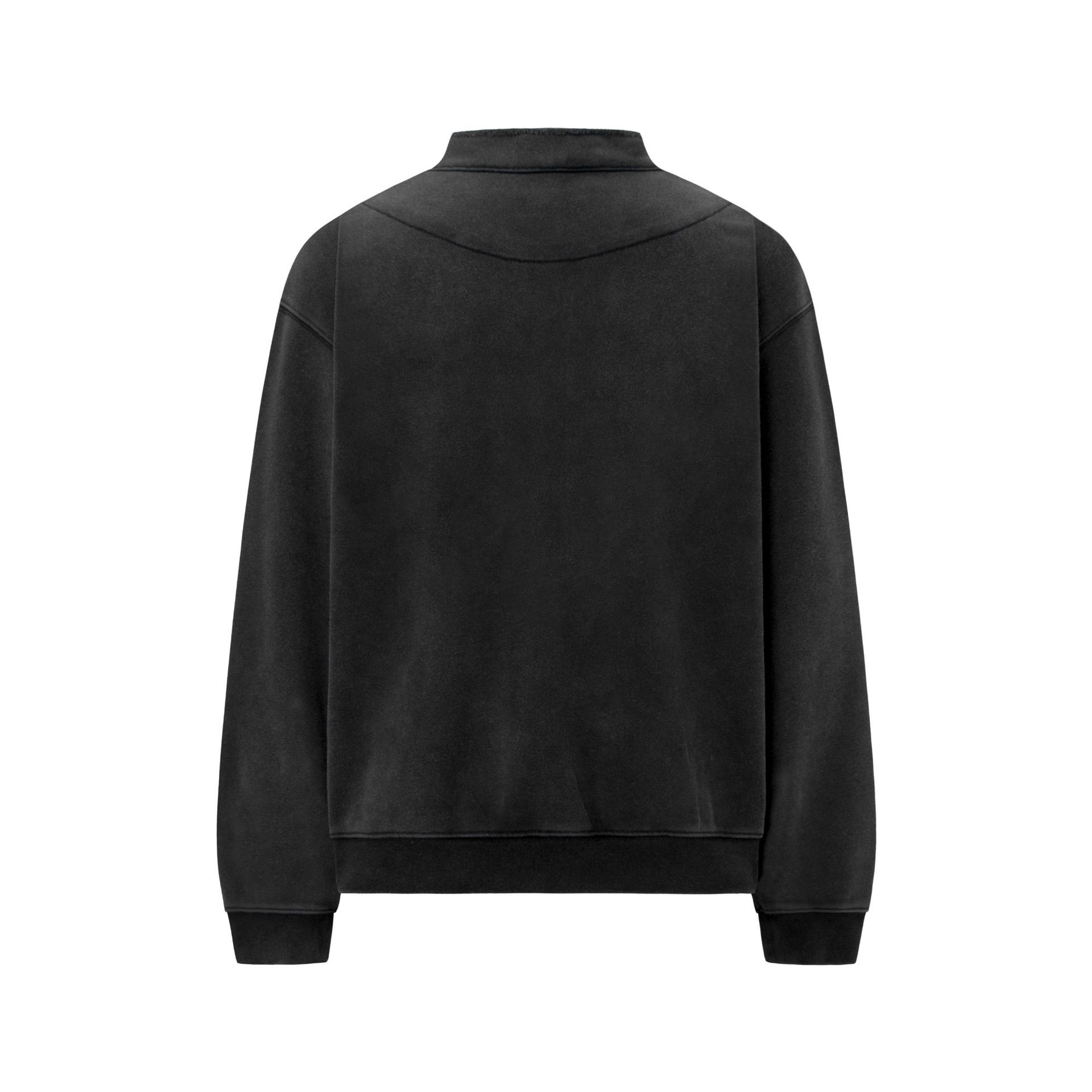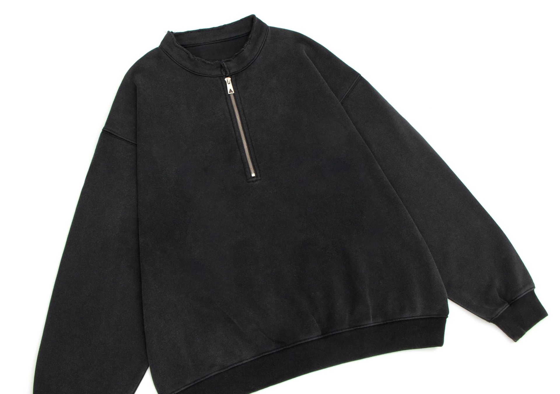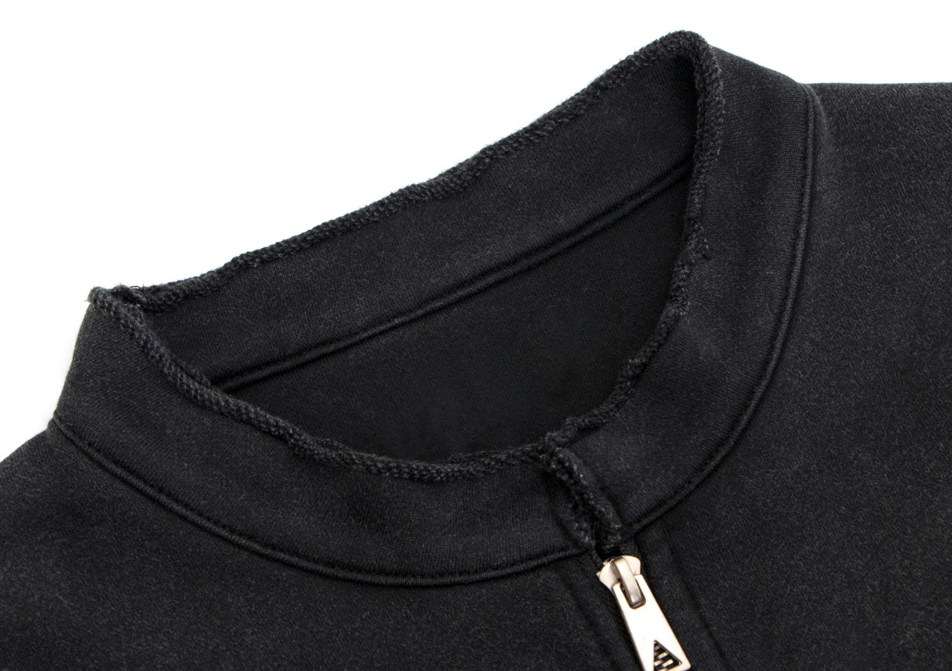 Vintage Street Style Heavyweight Washed Black Distressed Zipper Design Men's Loose Stand-up Collar Long Sleeve Hoodie