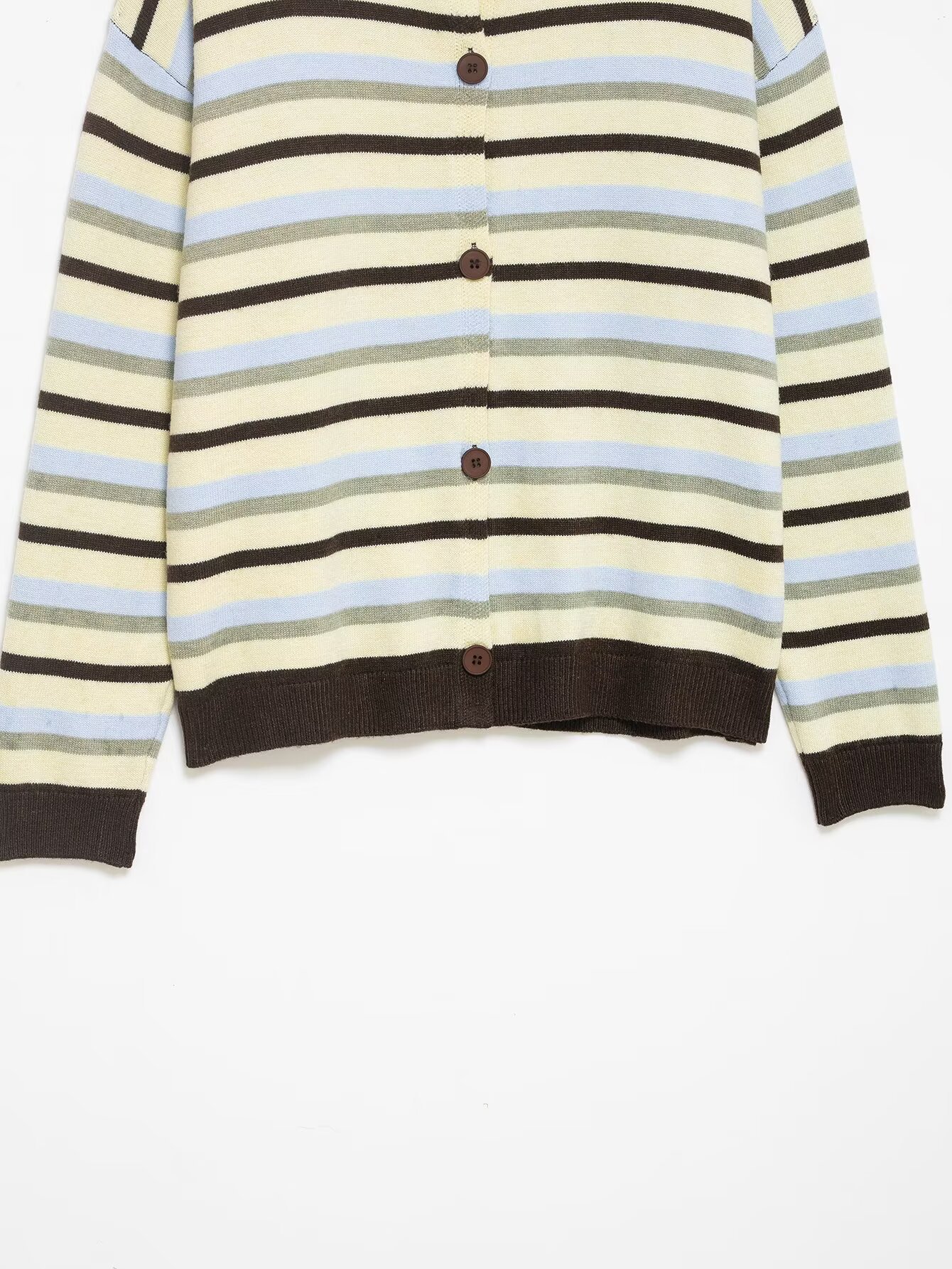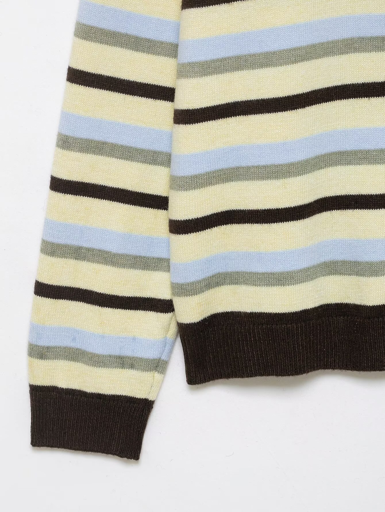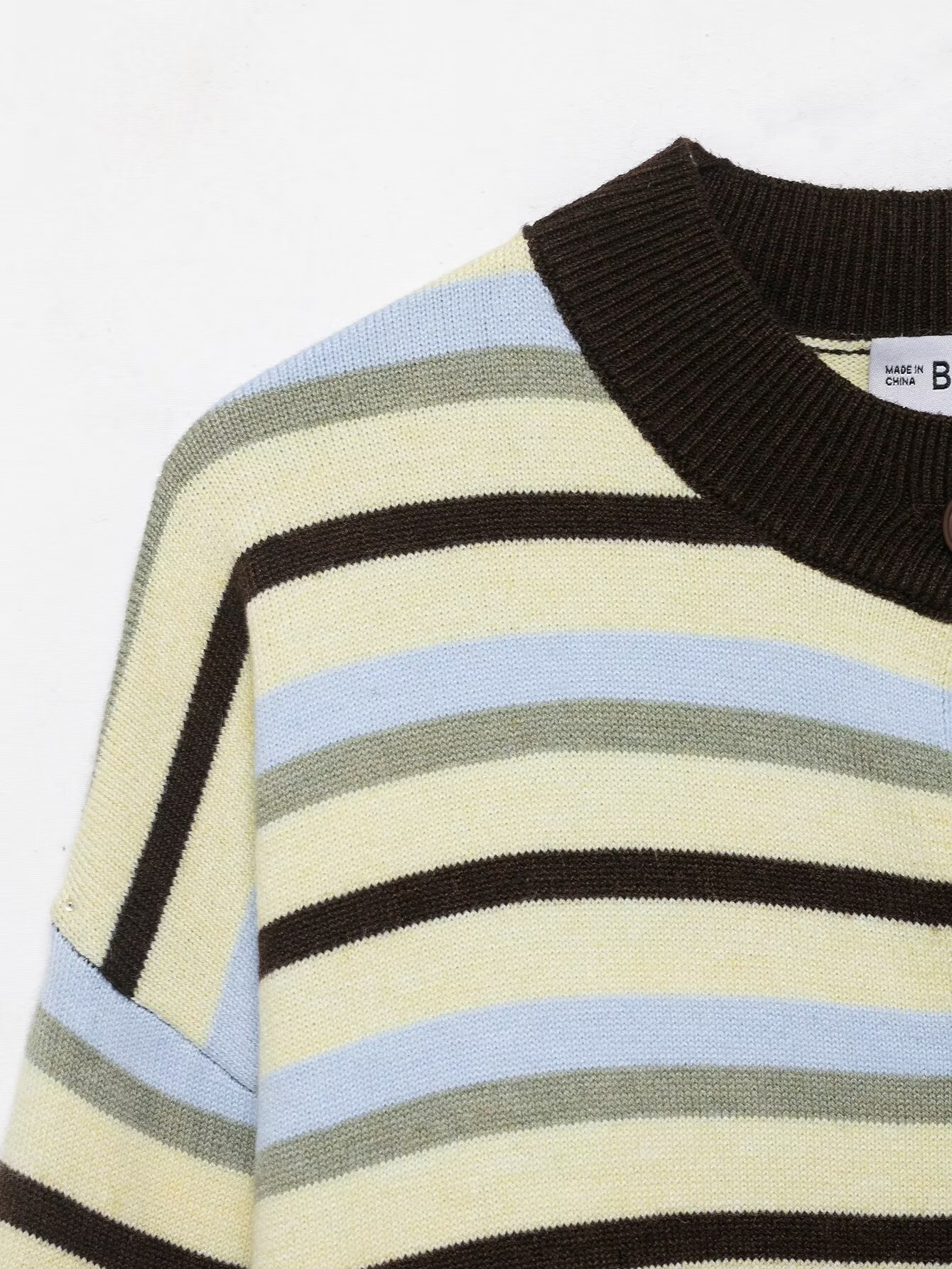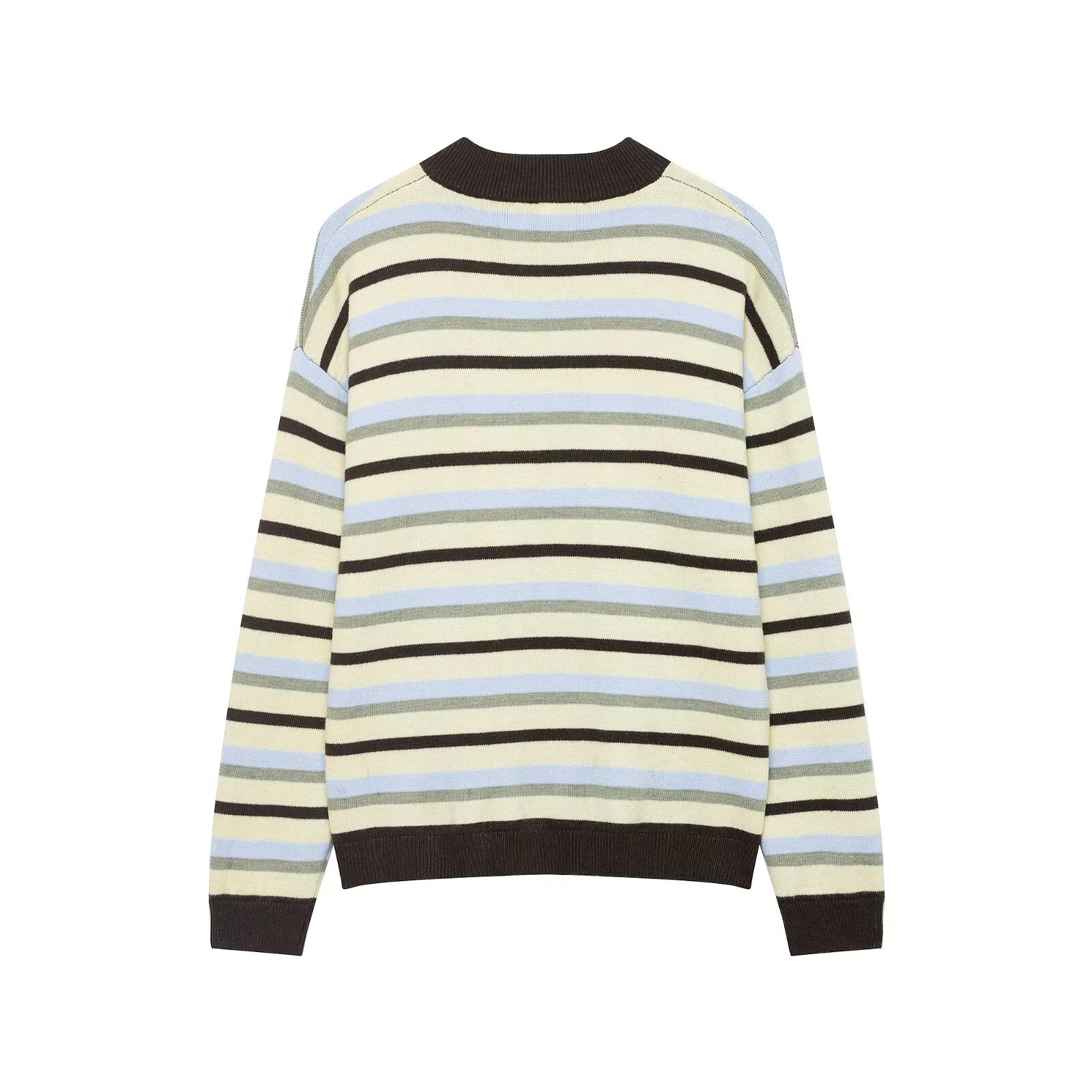 Style: Fashion StylePattern Type: StripeSleeve Length: Long SleeveNeckline: Round NeckFabric: Knit FabricMaterial: Polyester (Polyester Fiber)Closure Type: Single Button PlacketDetails: Collage/Splicing,... Read more