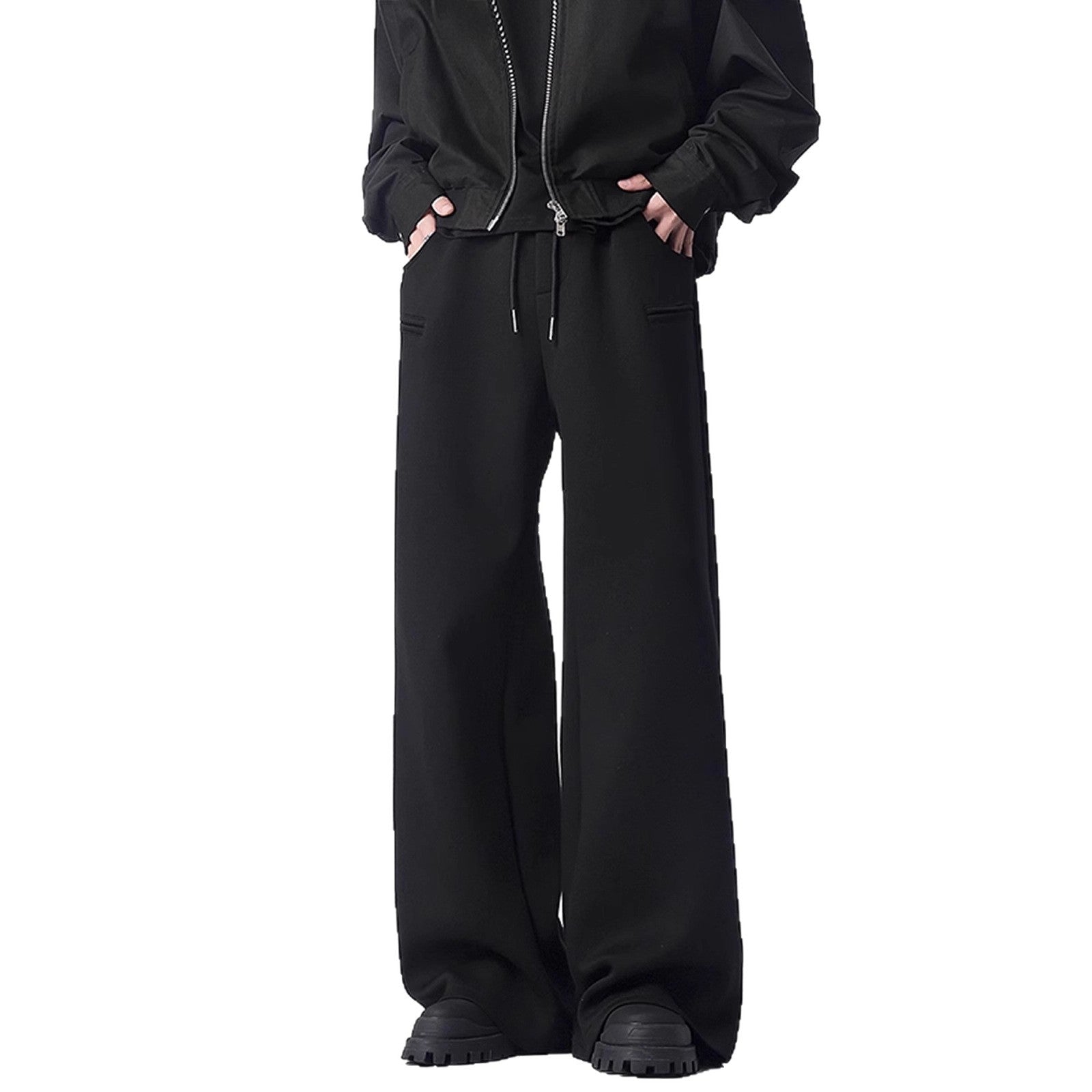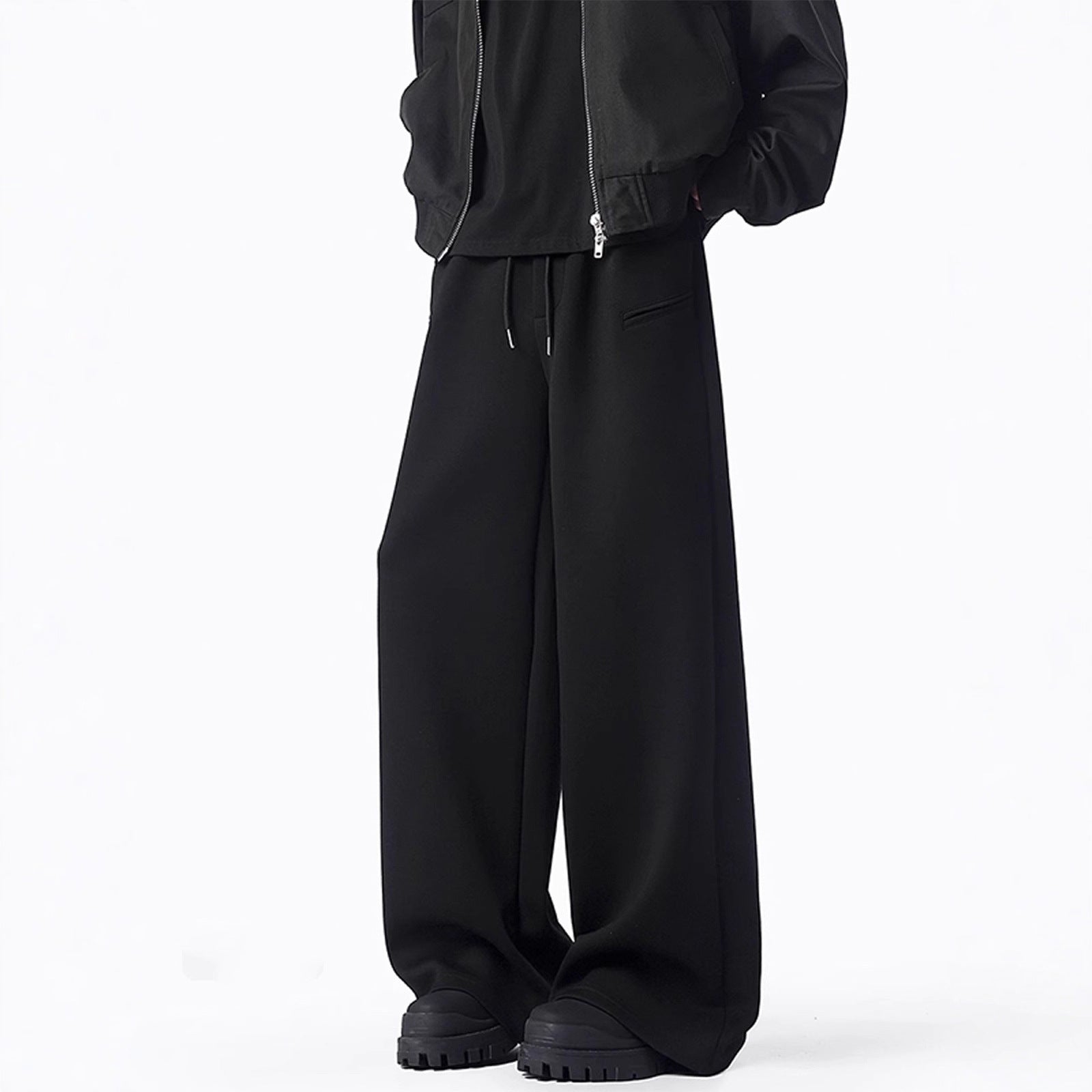 Fashionable Black Straight Leg Sweatpants Men Winter Street Style Casual Oversized Long Pants High Street Versatile Loose Pants