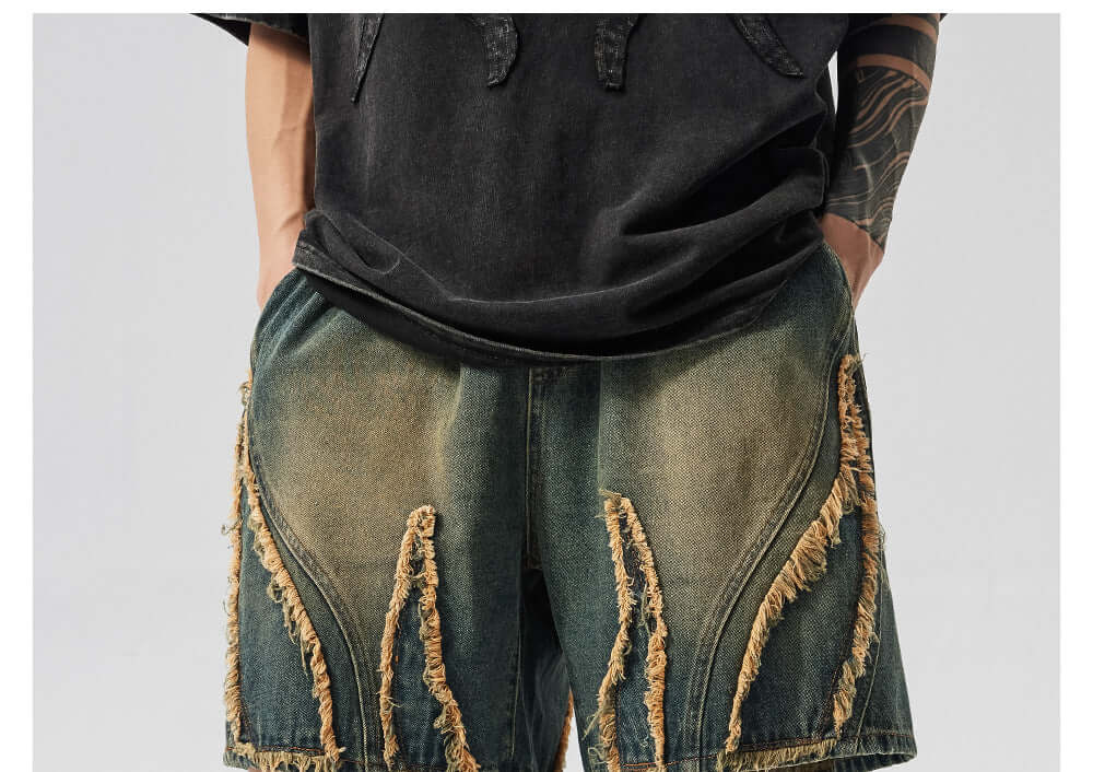 Intră în stilul verii cu acești pantaloni scurți din denim spălați retro pentru bărbați. Cu un tiv franjurat trendy, acești pantaloni scurți combină un design inspirat din vintage cu confortul casual, făcându-i perfecți pentru activități în aer liber, zile la plajă sau look-uri relaxate de streetwear.
