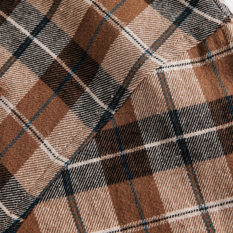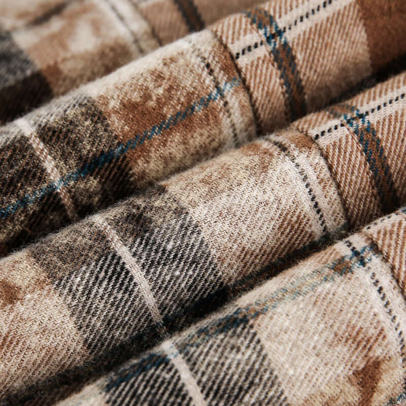 - Cămașă cu glugă din bumbac respirabil, cu un amestec lejer și carouri, cu guler rabatabil, pentru un confort elegant în stilul streetwear japonez.