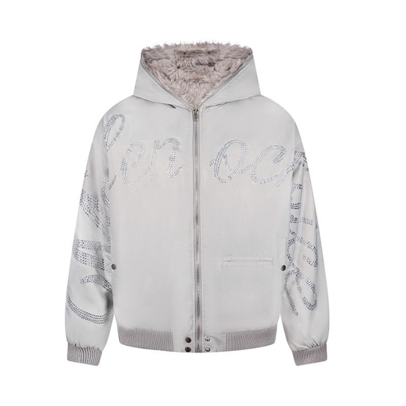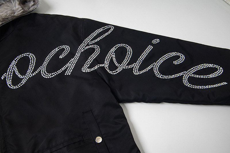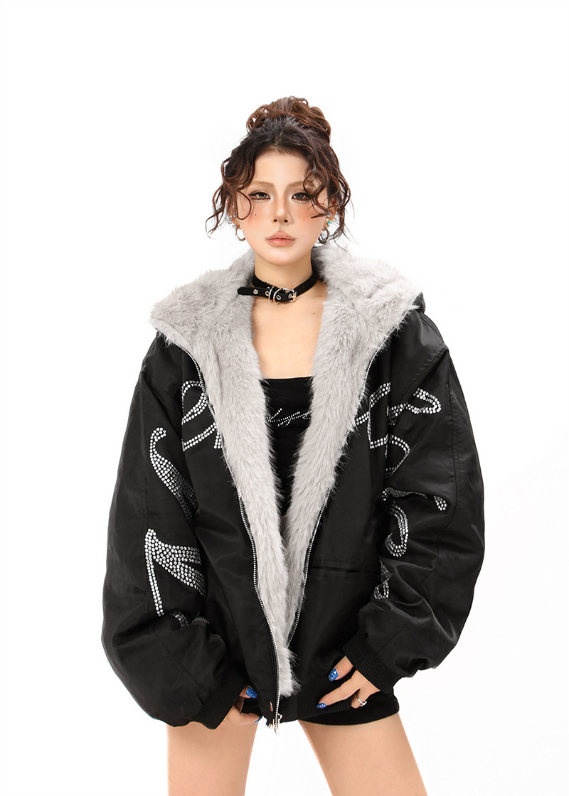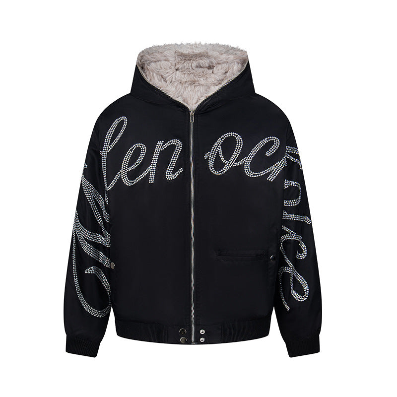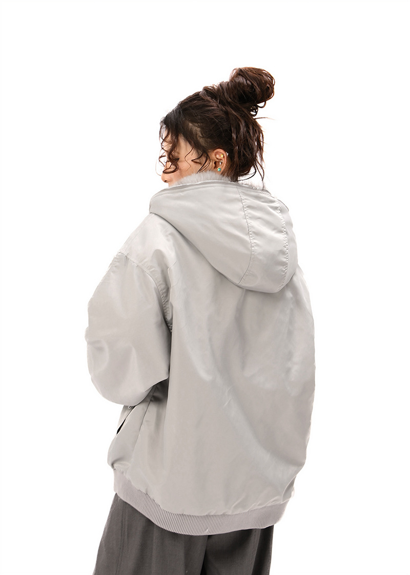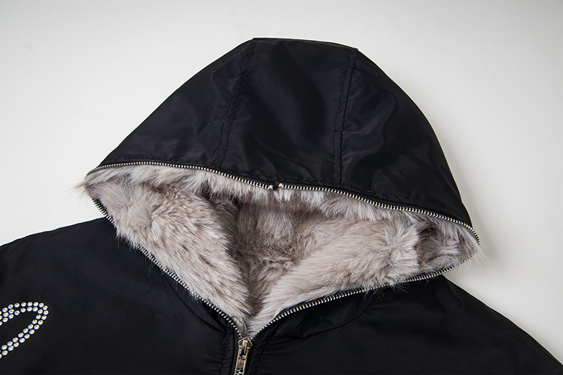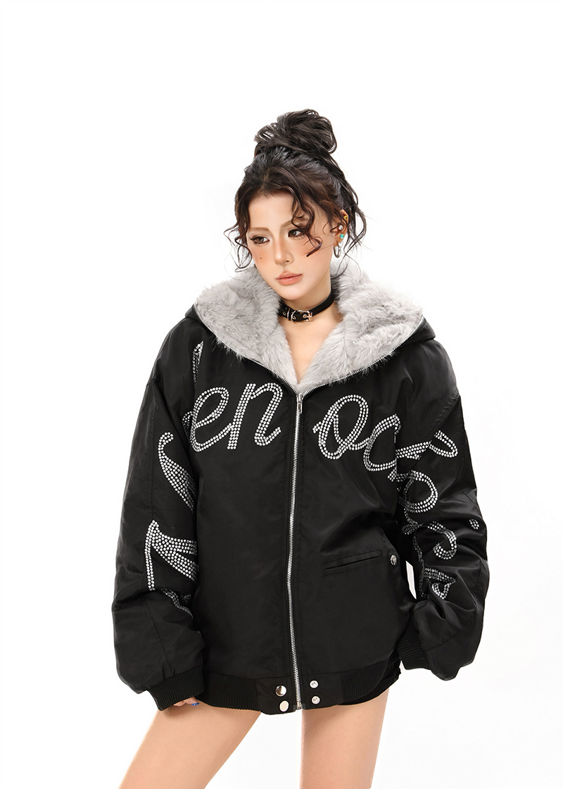 Hawk Embroidered Letter Hooded Cotton Coat Unisex Loose Warm Outerwear