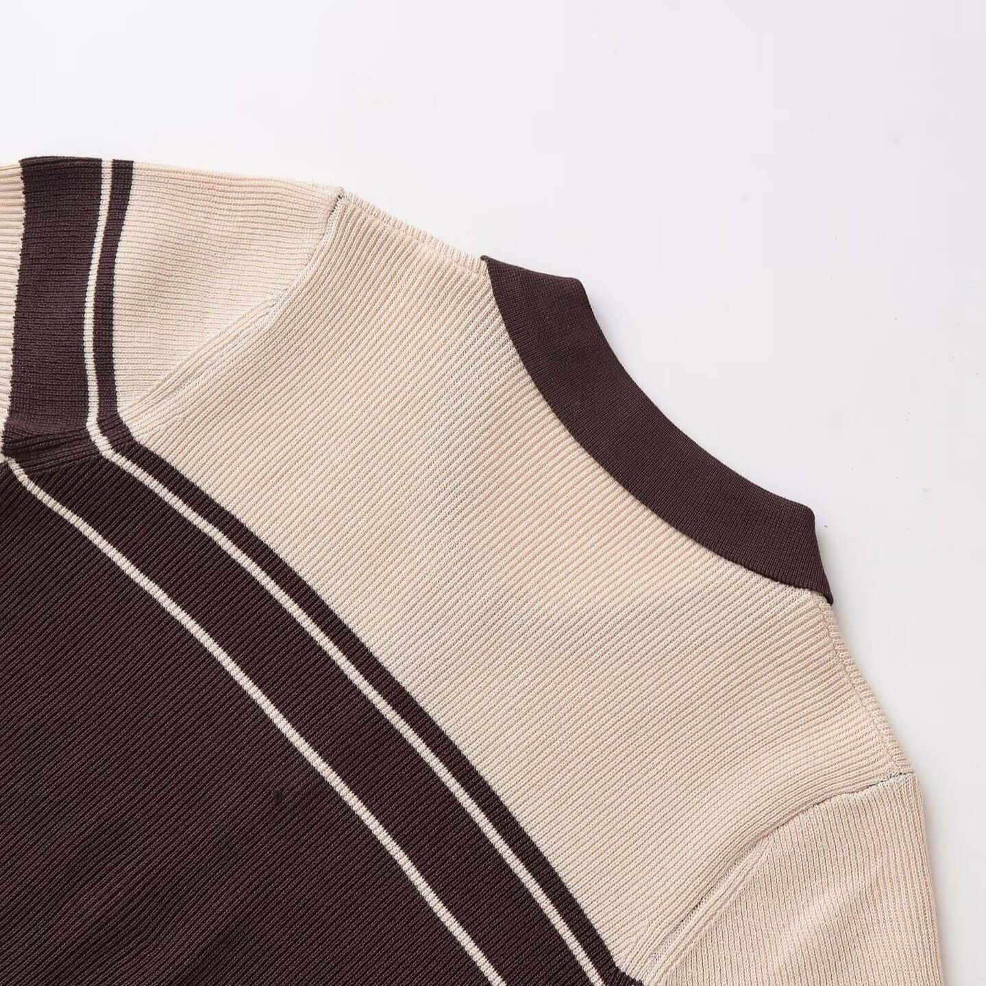 • Polo tricotat cu blocuri de culoare, respirabil și cu croială lejeră, dotat cu închidere cu nasturi, pentru un stil casual și confortabil în moda stradală masculină.