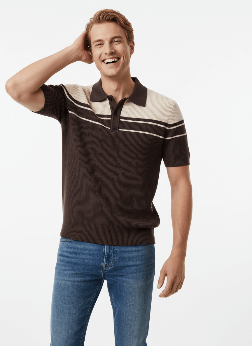 Grozavu Threaded Knit Polo Collar Top este creat pentru bărbații care apreciază moda stradală relaxată cu un accent rafinat și modern. Proiectat cu un guler clasic de polo și o deschidere cu trei nasturi, acest top tricotat îmbină structura atemporală cu stilul contemporan.