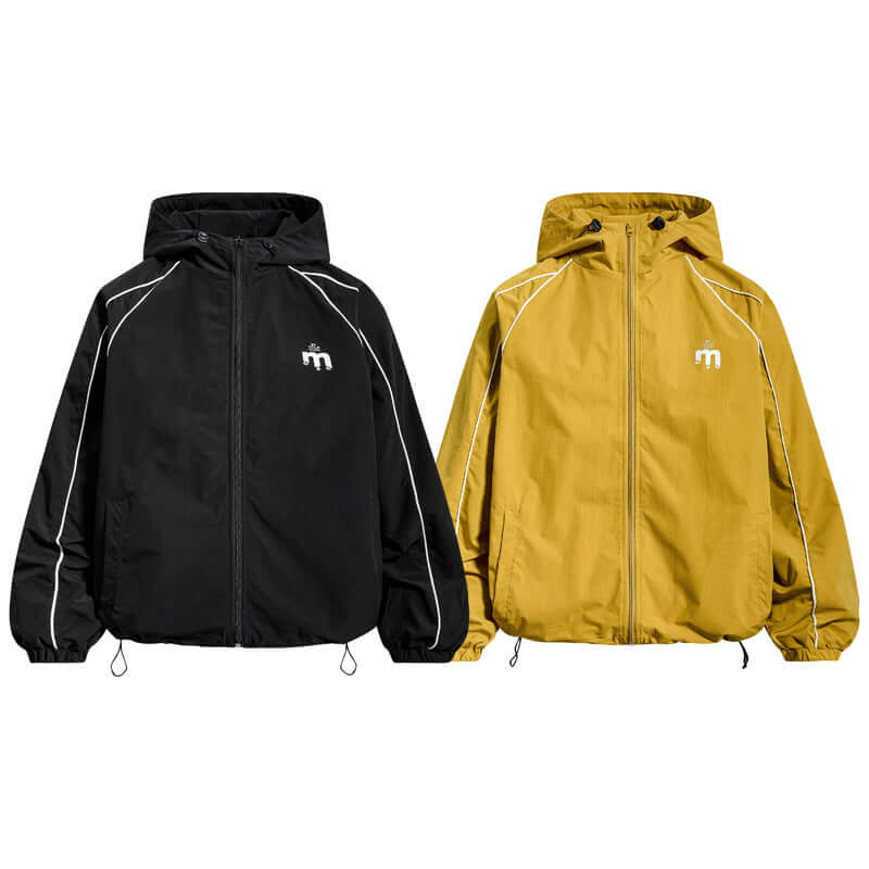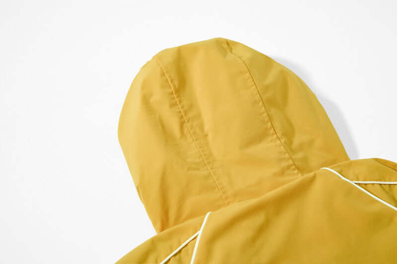 - Jachetă cu glugă, ușoară, cu fermoar, de tip lejer, cu inserții imprimate, pentru un streetwear unisex elegant, confortabil și versatil.