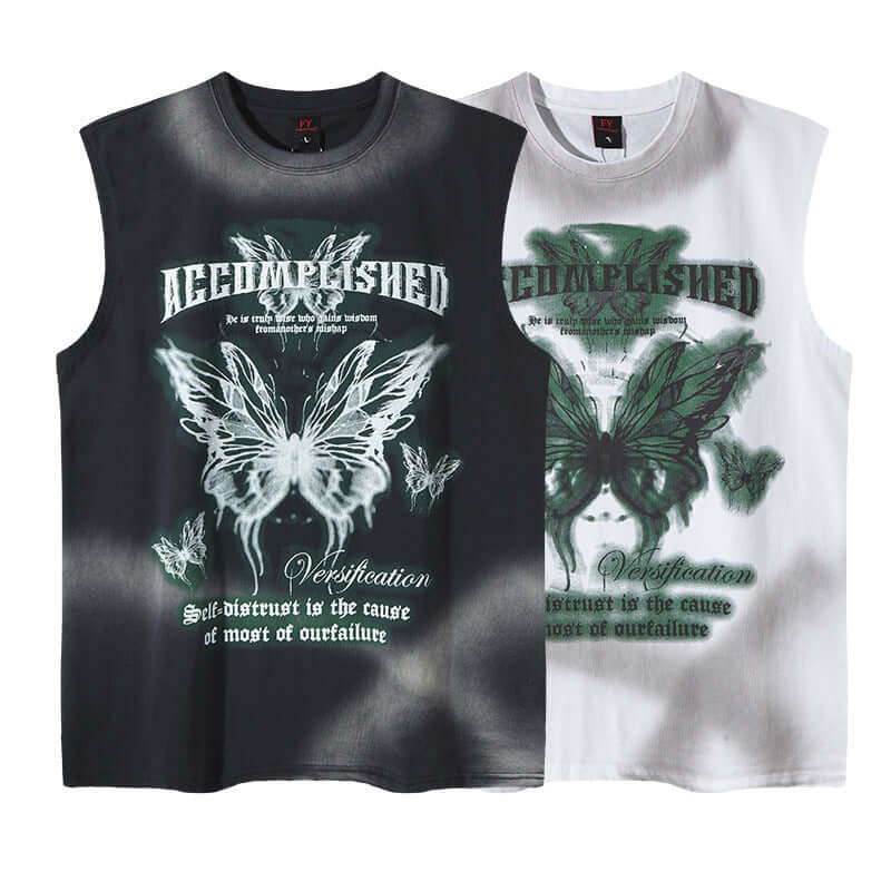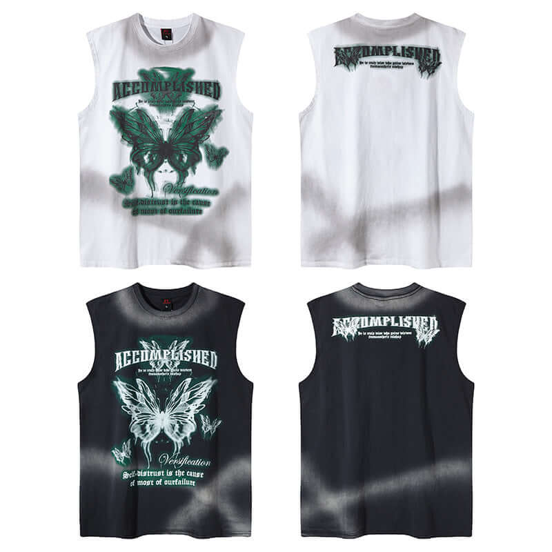 Top fără mâneci cu imprimeu fluture graffiti - Croială lejeră