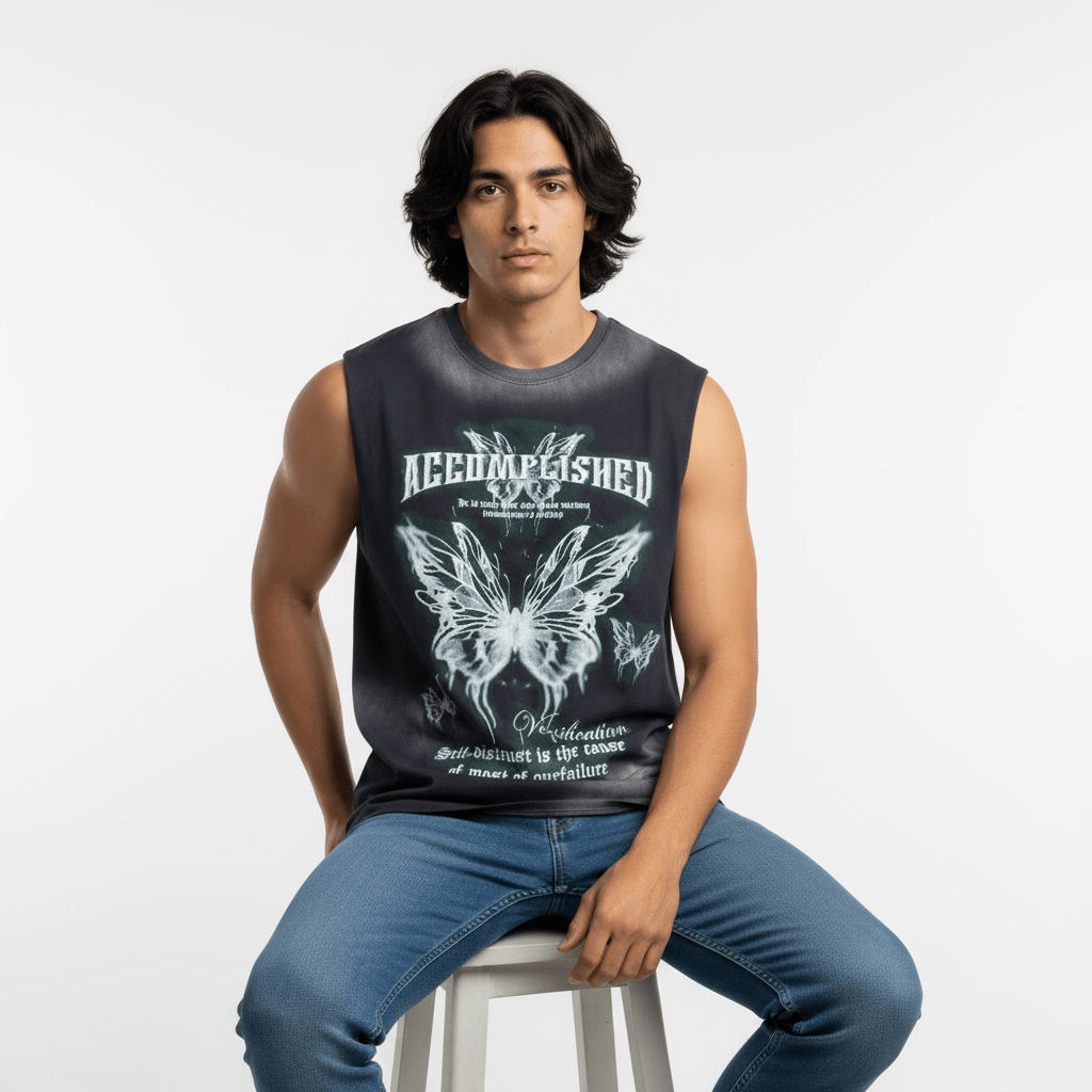Tricoul fără mâneci cu imprimeu graffiti fluture și litere este conceput pentru bărbații care doresc un stil stradal îndrăzneț, pregătit...
