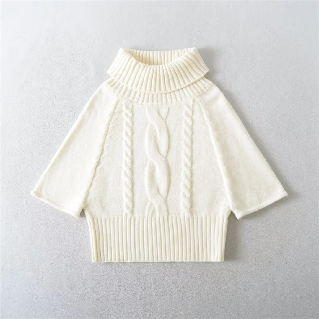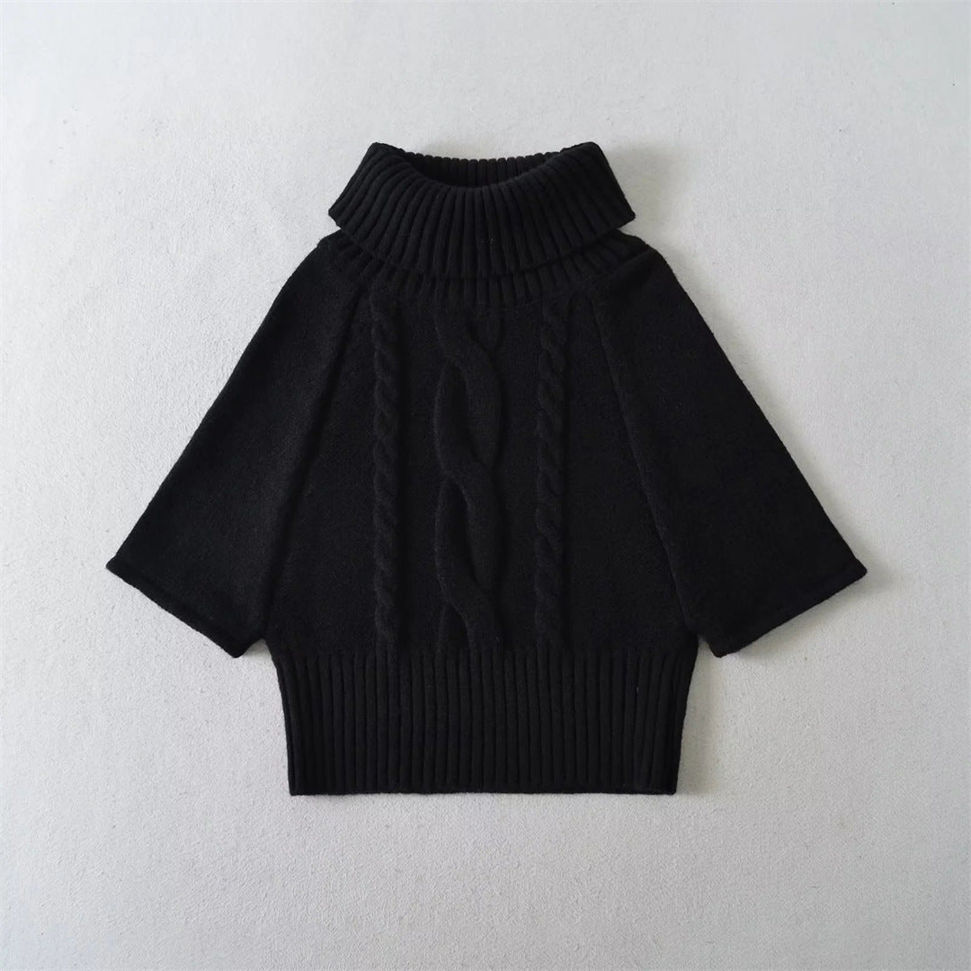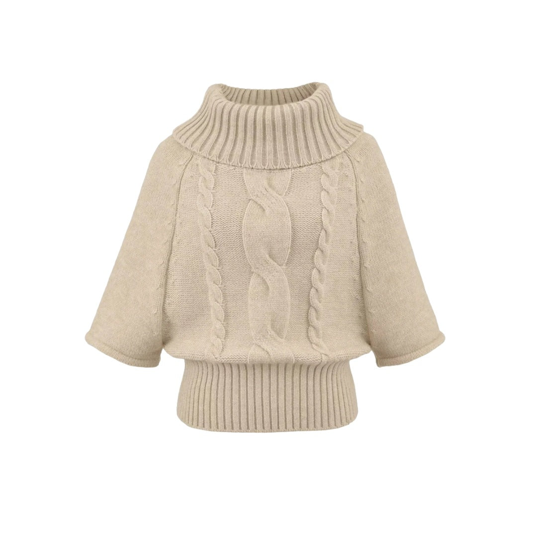 Pulover cu guler înalt din tricot cablu vintage multi-purtare pentru femei, top tricotat lejer
