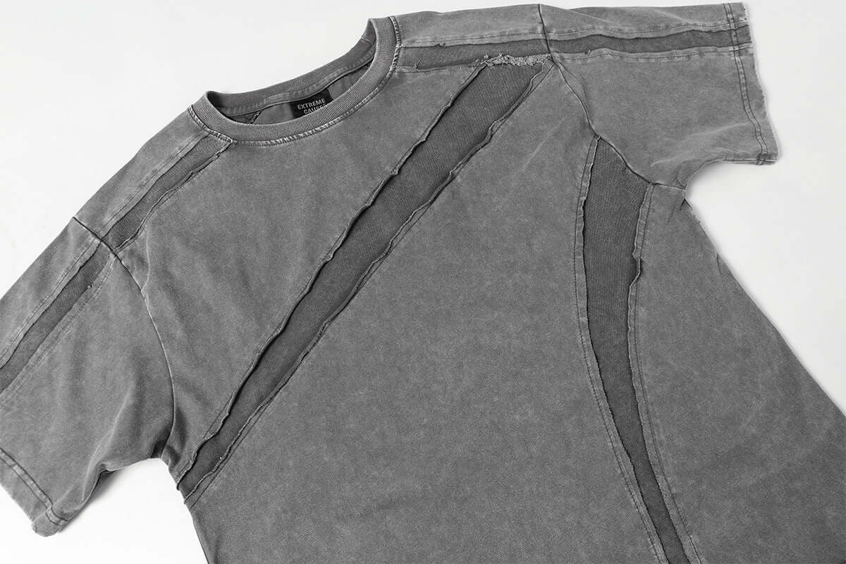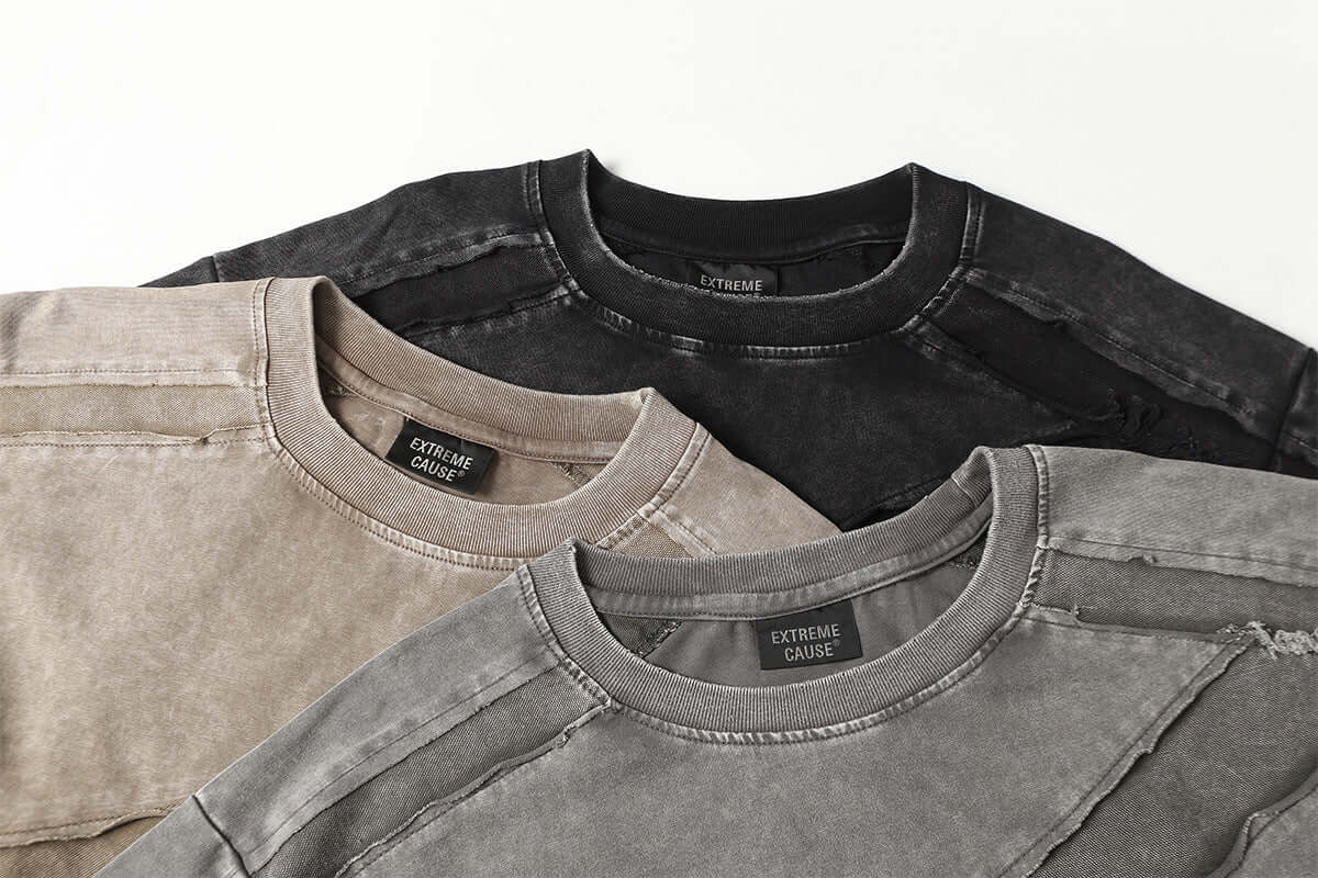 - Tricou din bumbac pur, respirabil, cu croială lejeră, spălat, cu margini deconstruite pentru un streetwear de vară elegant și confortabil.