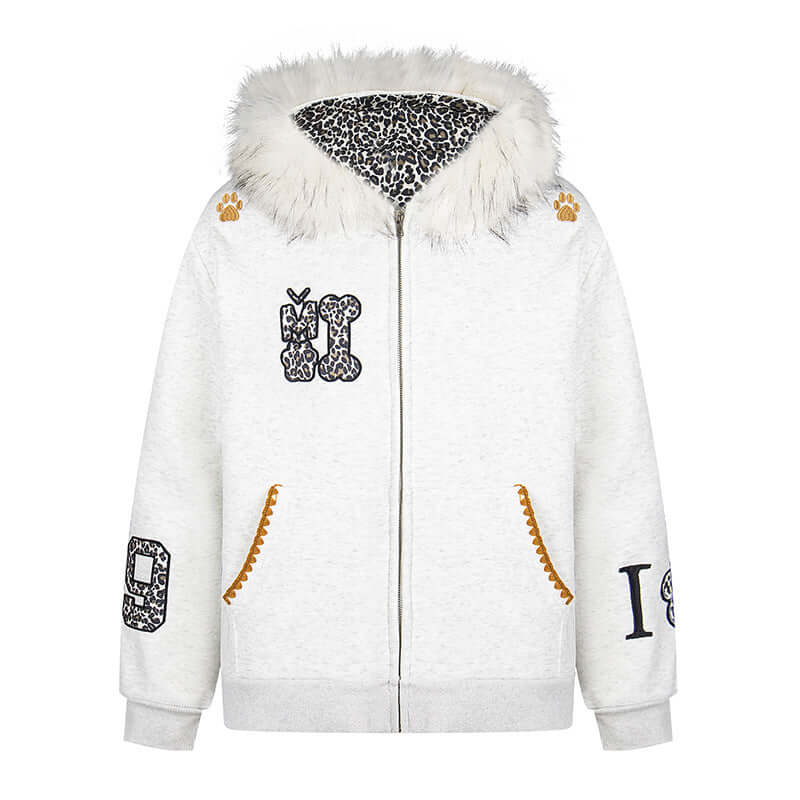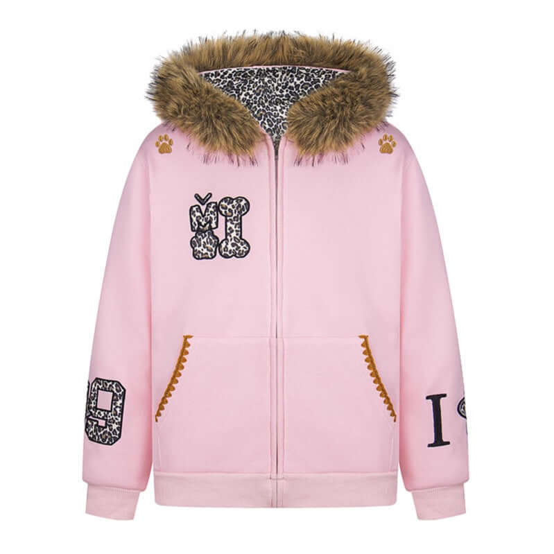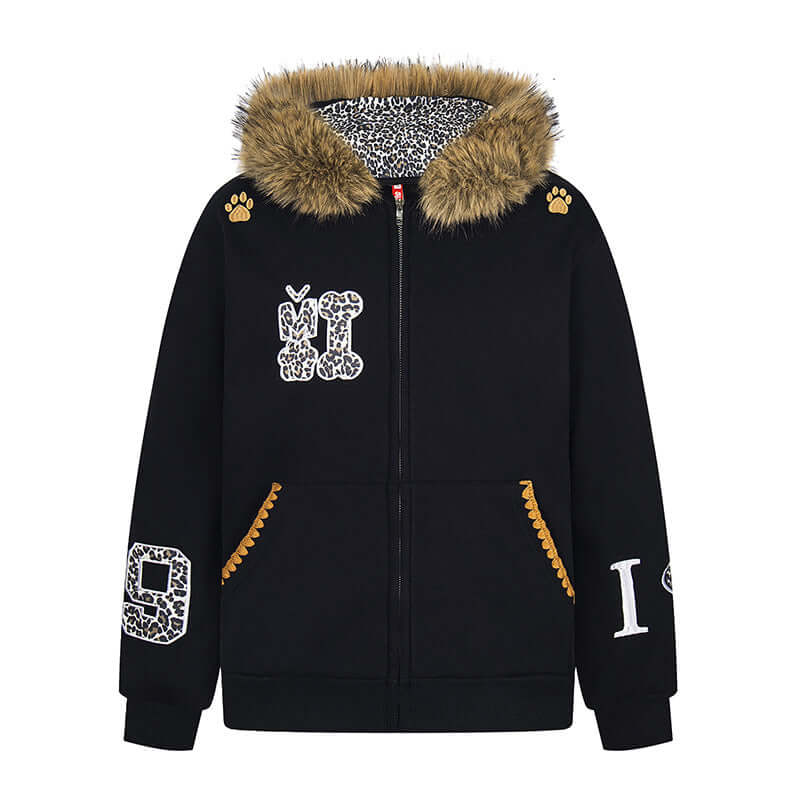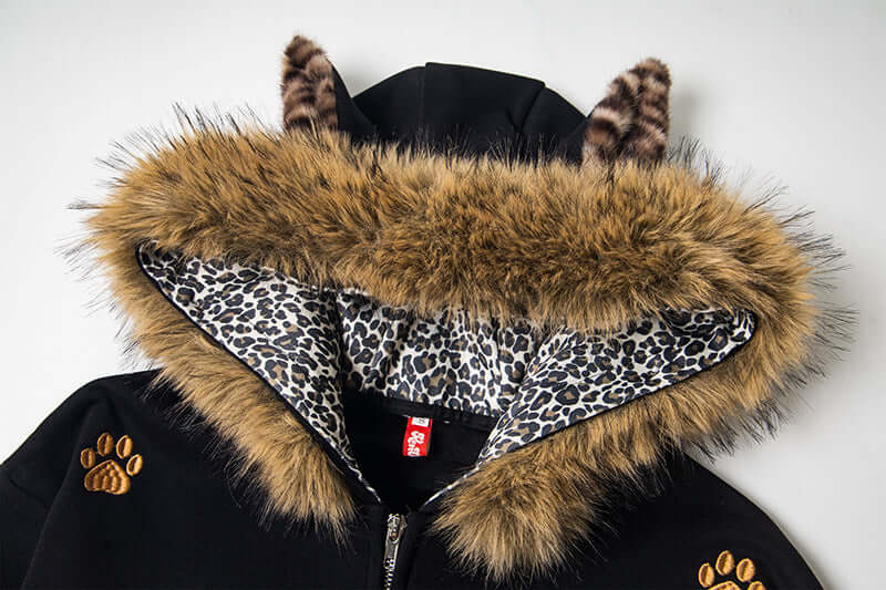 Hanorac cu urechi de leopard căptușit cu fleece