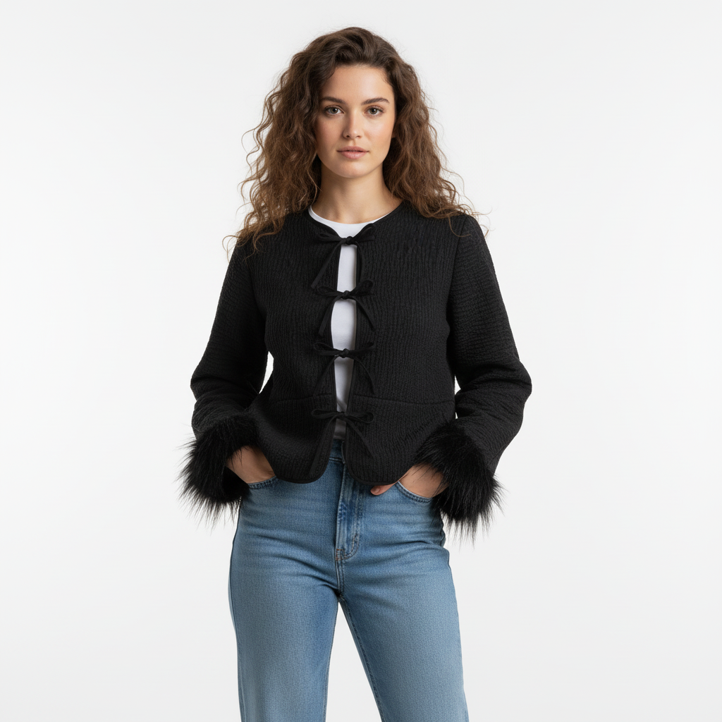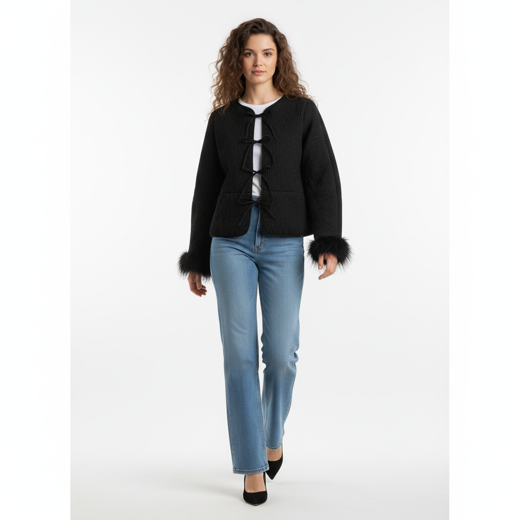 Jacheta Grozavu pentru femei cu manșete din blană și închidere cu un singur rând de nasturi oferă o simplitate elegantă cu o notă de căldură rafinată. Concepută într-o culoare neagră clasică, această jachetă are manșete moi din blană care ridică o siluetă curată și minimalistă.