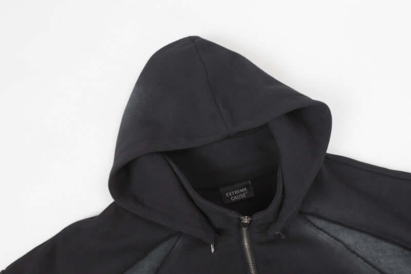 Ieși în evidență cu o energie urbană îndrăzneață în Hanoracul cu Fermoar pe Jumătate Retro Street Style Spray Paint Patchwork,...