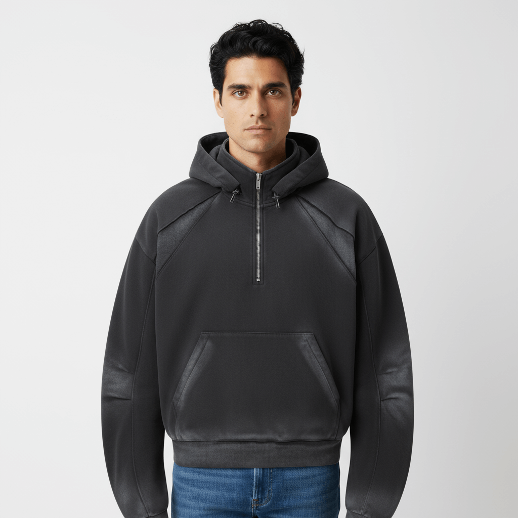 Ieși în evidență cu o energie urbană îndrăzneață în Hanoracul cu Fermoar pe Jumătate Retro Street Style Spray Paint Patchwork, conceput pentru o exprimare fără efort a stilului streetwear. Cu un model de patchwork cu spray-paint în gradient, acest hanorac oferă o estetică retro brută inspirată de moda stradală underground.