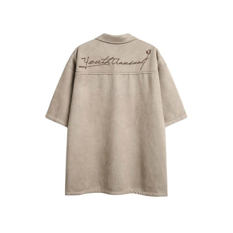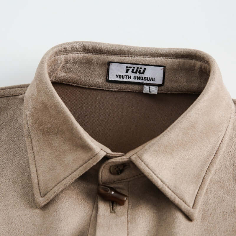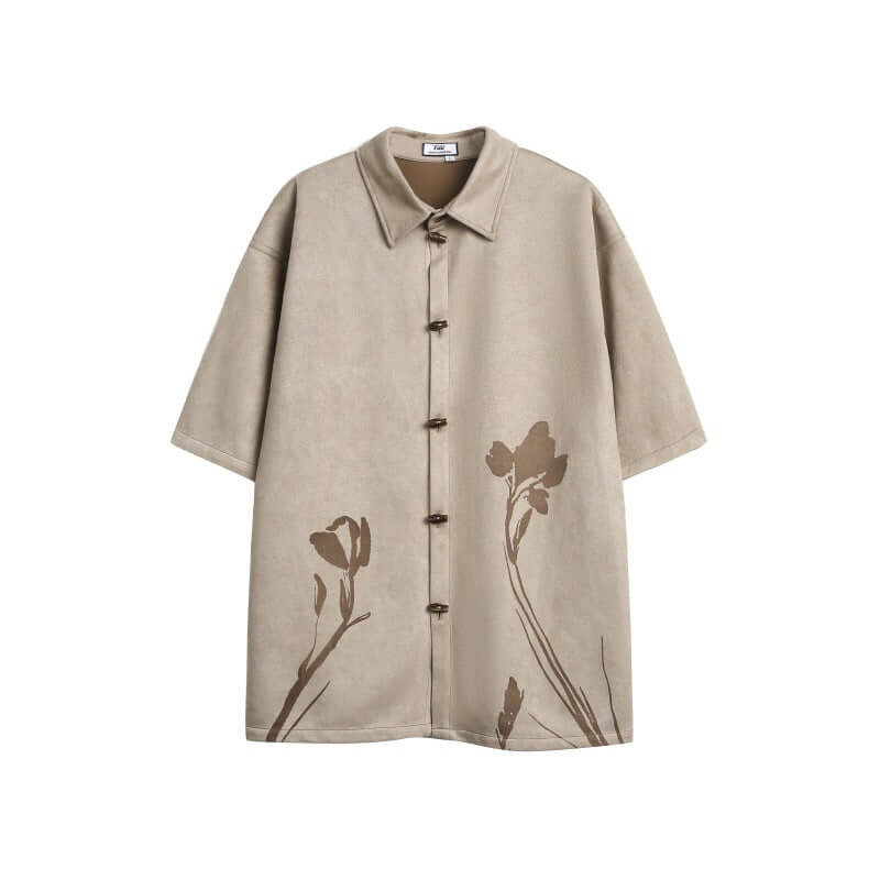 Cămașă din suede cu mâneci scurte - Croială lejeră
