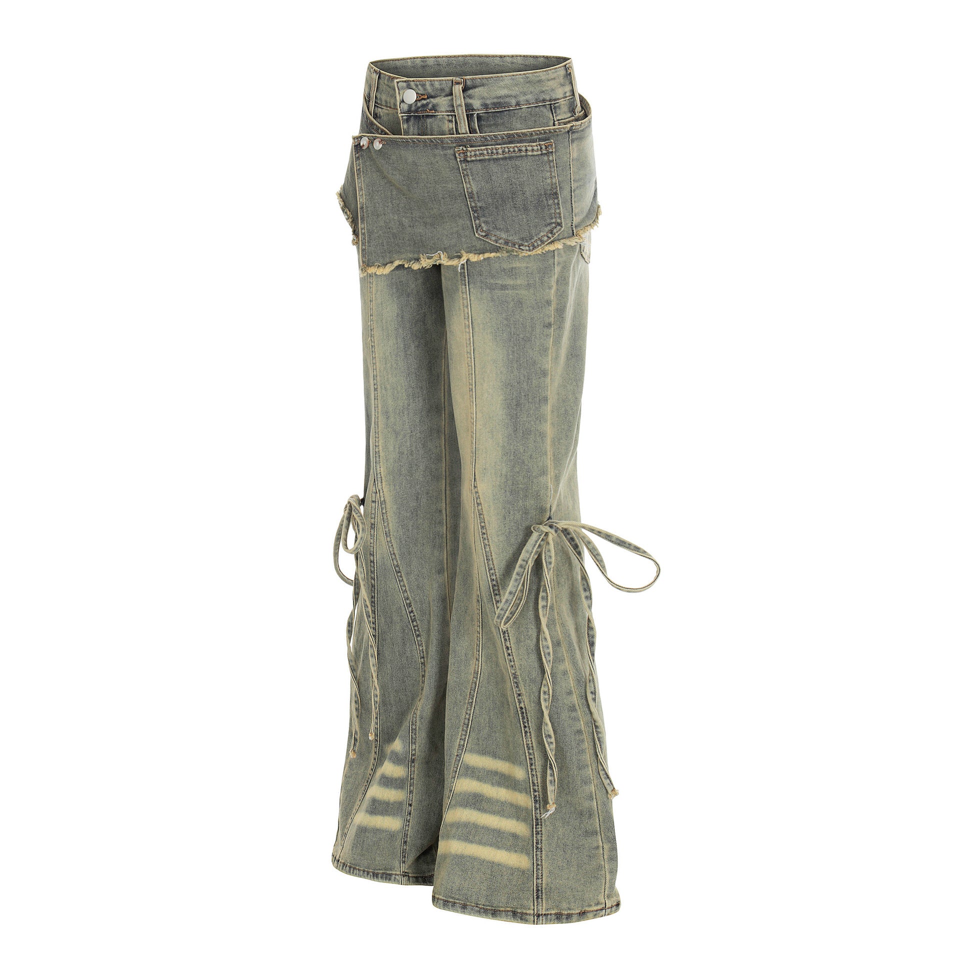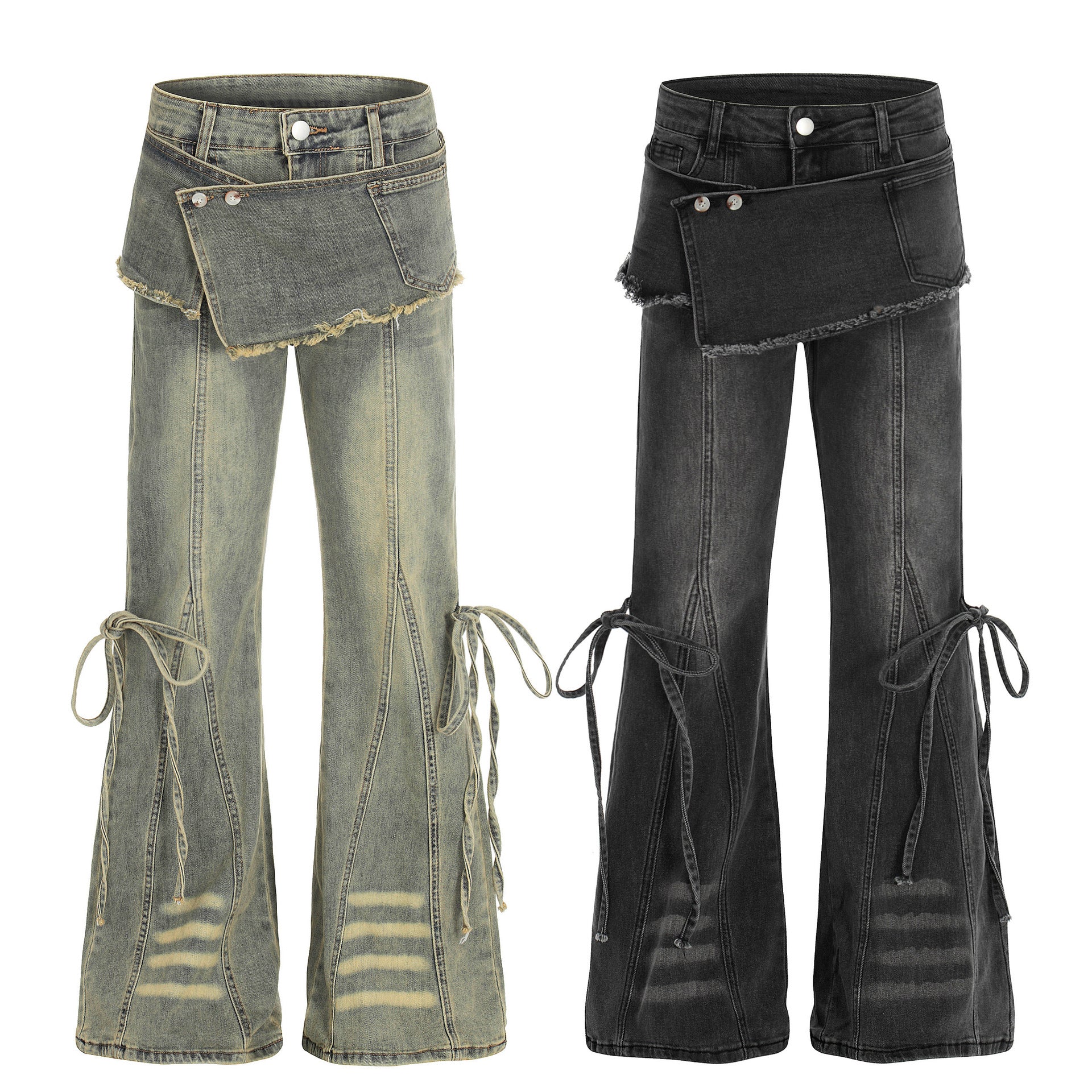 Women's Urban Edgy Casual Pants with Denim Decorative