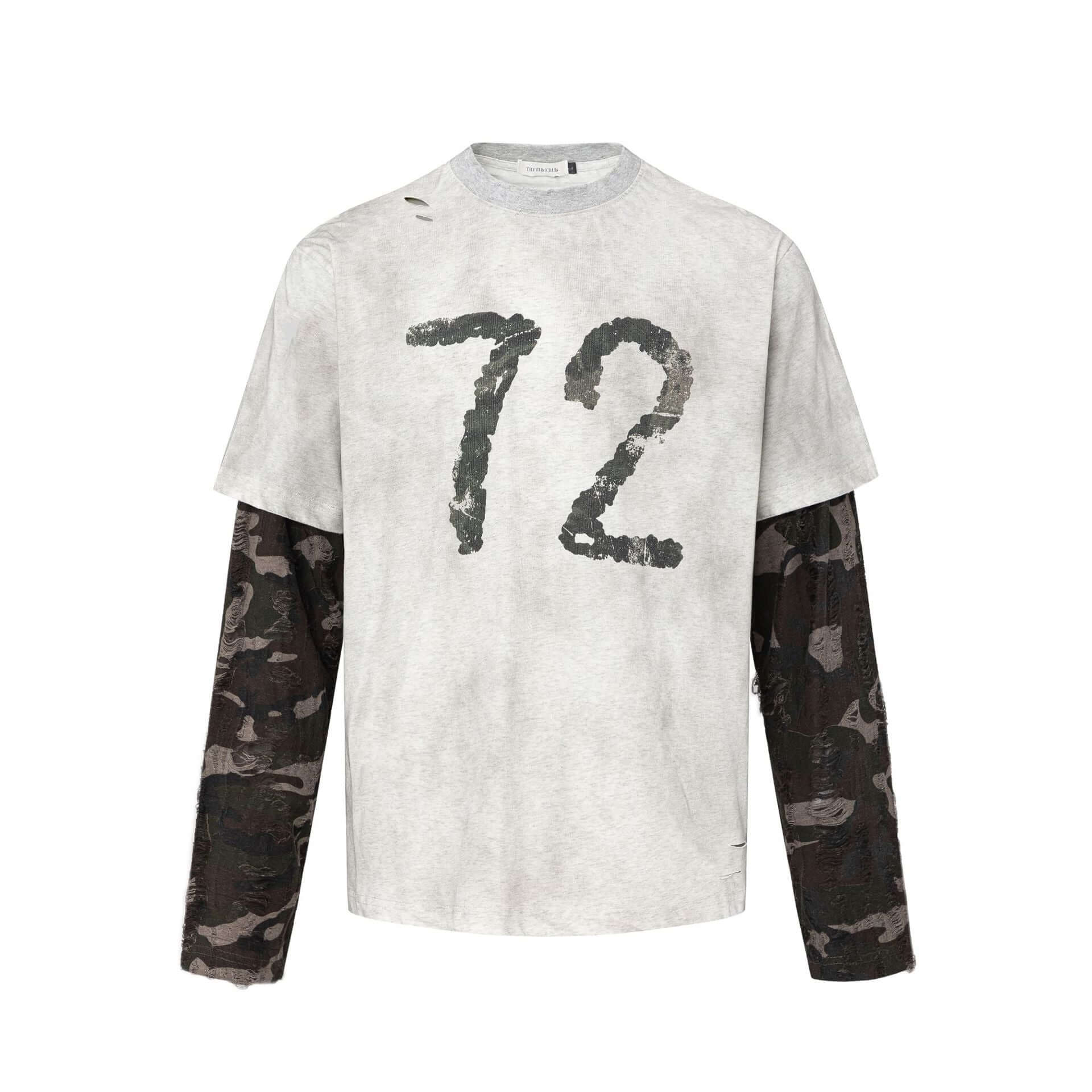 • Letter Print Two-Piece Long Sleeve TShirt with vintage-style design and bold 72 print